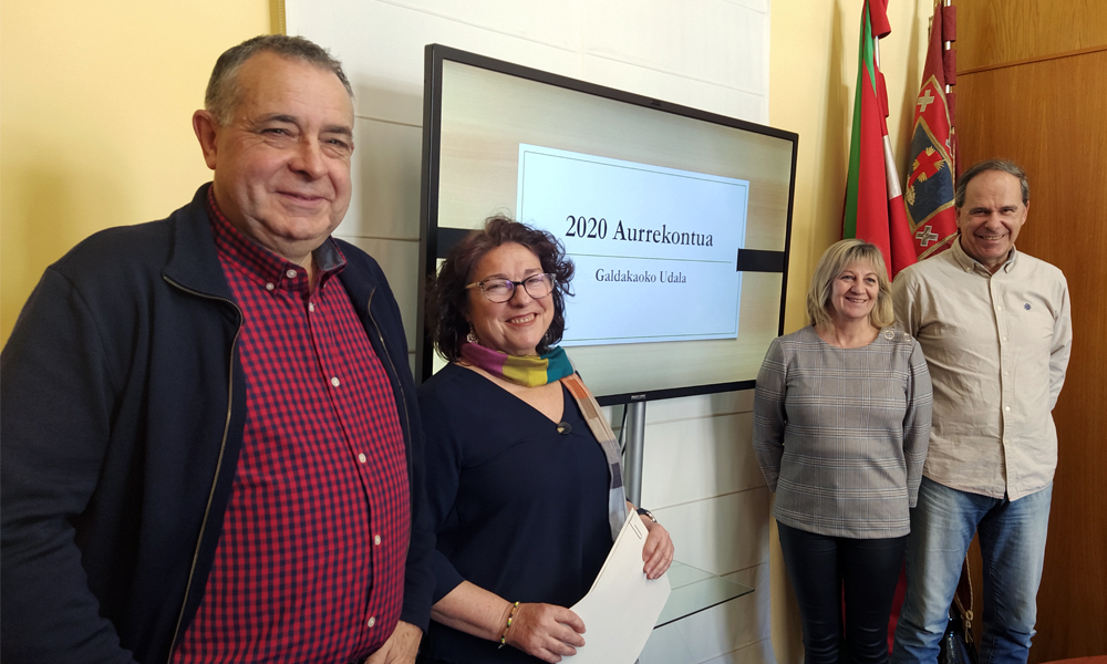 Galdakaoko Udaleko gobernu taldeak (EH Bildu, Auzoak, Usansolo Herria eta Elkarrekin Podemos) 2020rako aurrekontu proiektua aurkeztu du. Aurten 37 milioi euro baino gehiagoko aurrekontua (37.552.842 euro) izango du Galdakaok, iaz baino % 1 gehiago. “Igoera, baina, ez da zergak edo tasak handituta lortu, baizik eta hirigintza-probetxuak hobetuta”, dio Maite Arandia Ogasun arloko zinegotziak.