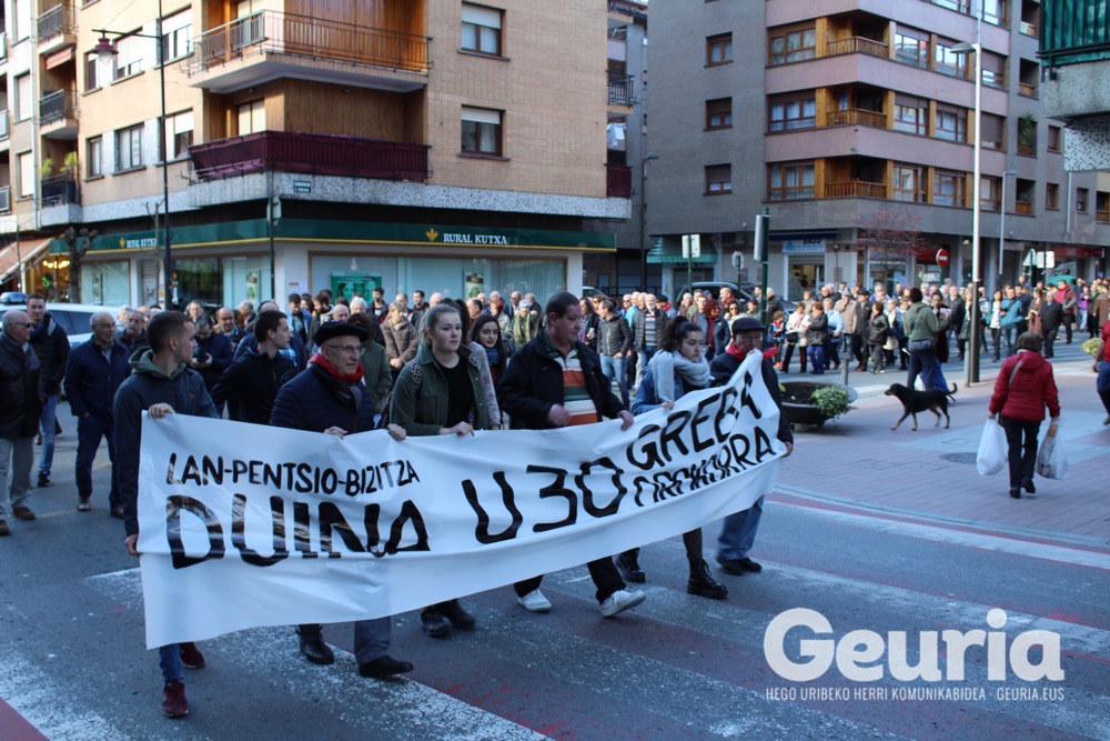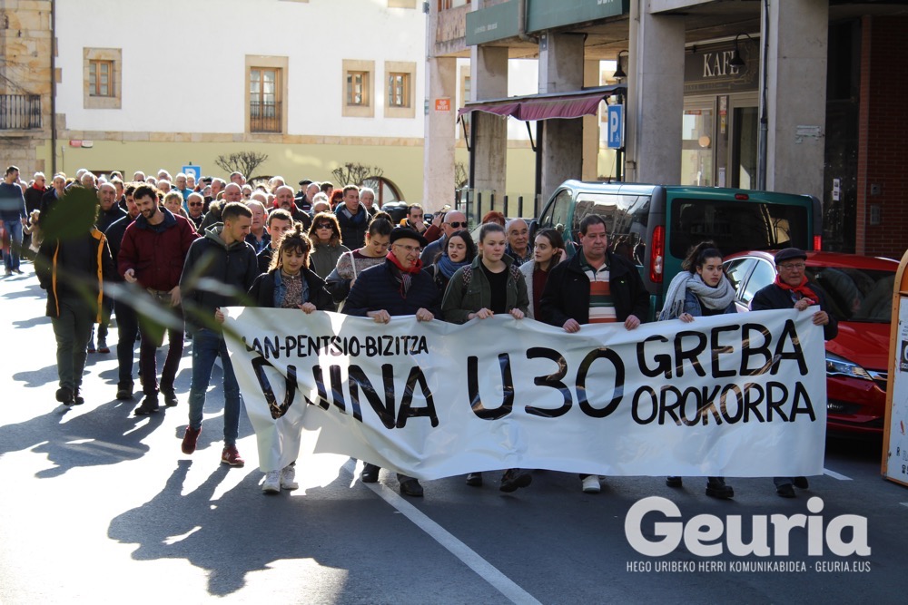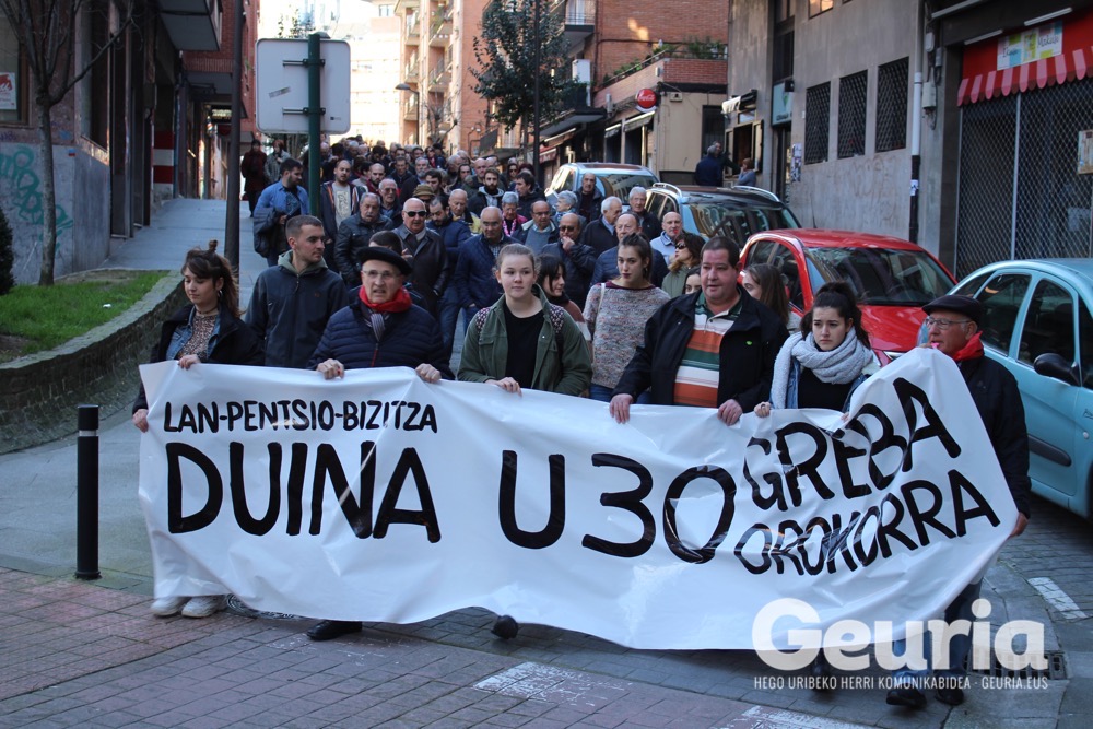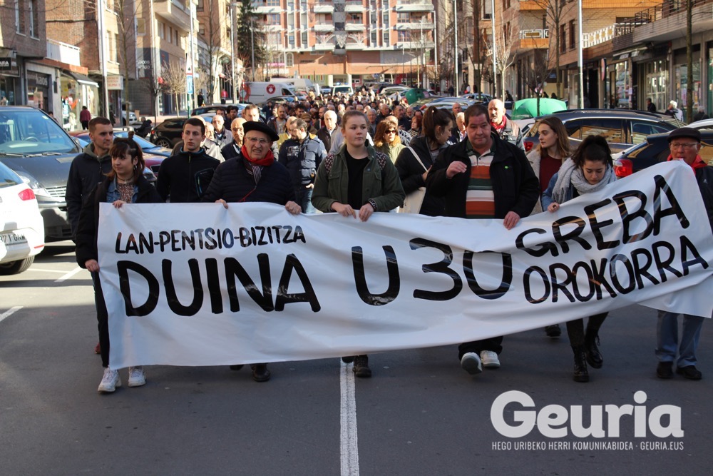 Bideoa / U30 greba orokorraren aldeko manifestazioa egin dute urtarrilaren 18an Galdakaon. Manifestaziora 300 lagun inguru batu da.