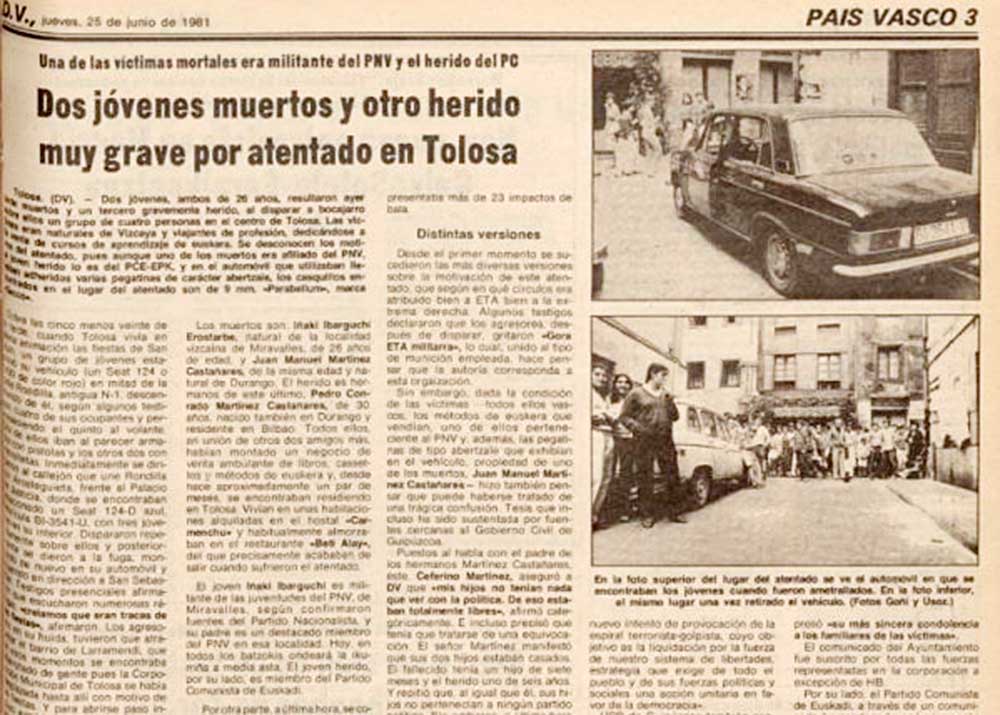 1981ean Tolosan egindako atentatua onartu du ETAk, 2018ko azaroaren 6an argitaratutako azken ‘Zutabe’an. Udalbatzak erailketa gaitzesteko mozioa onartu du, EAJren aldeko botoekin eta EH Bilduren abstentzioarekin.