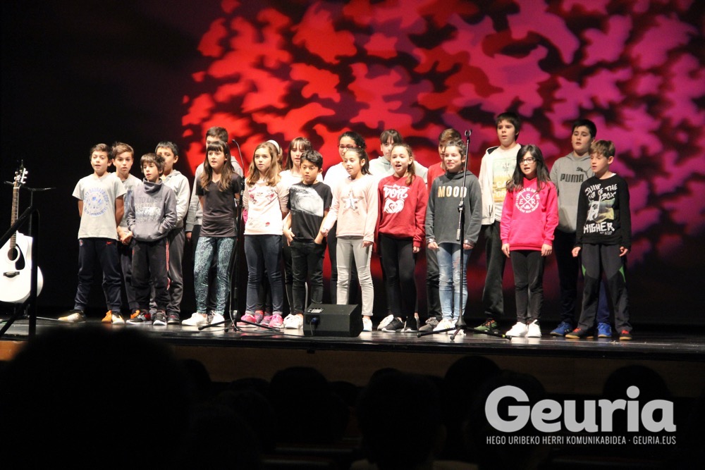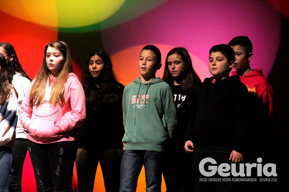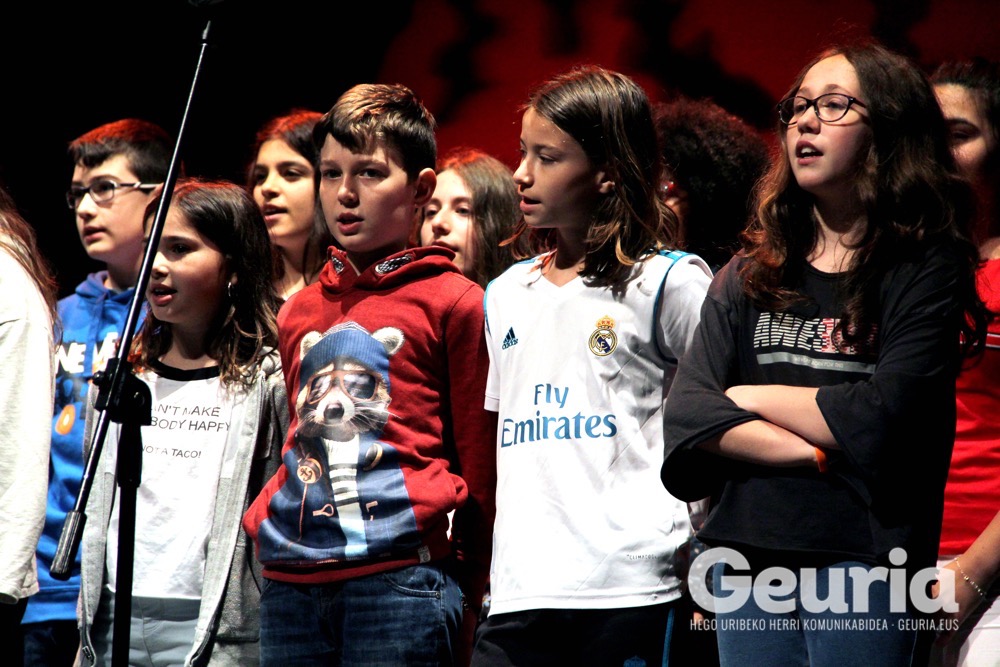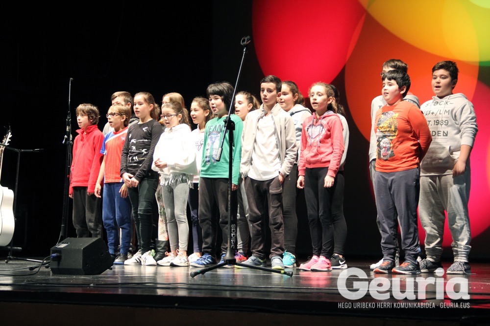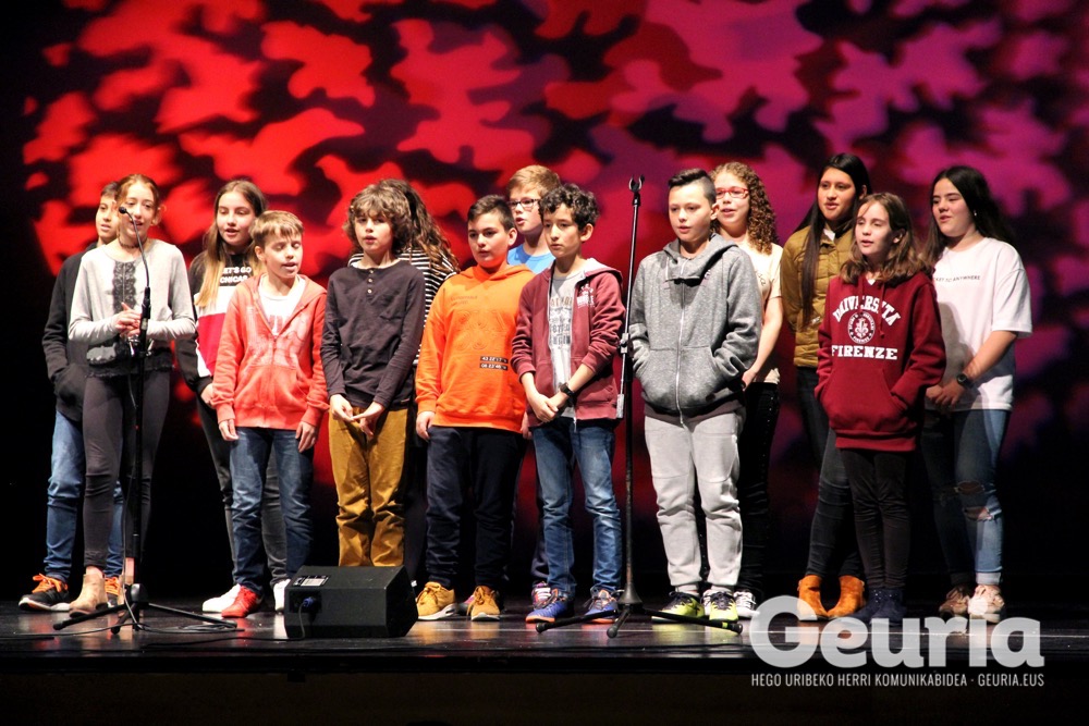 Euskal Astearen egitarauaren barruan, Basauriko ikastetxeen arteko Bertso Topaketa ospatu da gaur Social Antzokian. Lehen Hezkuntzako bosgarren eta seigarren mailako 600 ikasle inguruk parte hartu dute topaketan. Besteak beste, Donald Trump eta gerra, genero indarkeria, bullyinga edo eskola jazarpena, osasuna eta kirola, natura eta San Migeleko herri-nortasuna izan dira bertsoetan erabili dituzten gaiak. Bertsotan aritzeaz gain, hainbat euskal abesti ezagun kantatu dituzte ikasleek eta irakasleek, Garoa Arizmendi abeslari mutrikuarra lagunduz.