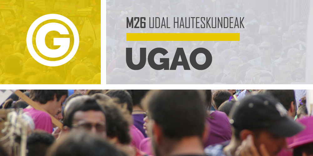 Ekaitz Mentxaka izango da bigarrenez EAJko zerrendaburu Ugaon. Azken hauteskundeetan emaitzak hobetu zituen eta helburu berarekin egingo die aurre datozenei, gehiengo zabala mantentzeko. EH Bilduk talde eta hautagai berria du, Maider Gaztaka ugaotarra buru dela. Ilusioz eta eraberriturik ekingo die hauteskundeei ezker koalizioak, Espainiako hauteskundeetan egin bezala, egungo emaitzak hobetzeko asmoz. José Antonio Carrillo eta Mónica Marín dira PSEko eta PPko hautagaiak, hurrenez hurren.