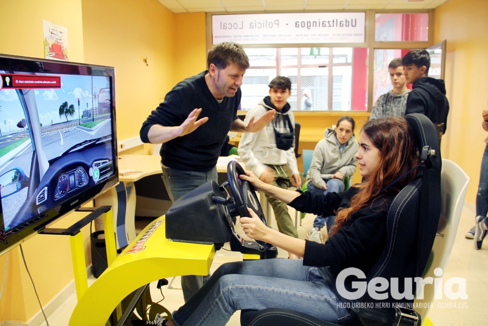 Gidabaimena euskaraz kanpaina zabaltzeko ikus-entzunezko bat ekoiztuko du Udalak. Ikasleek euskarazko gidatze-simulagailua probatzeko aukera izan dute.