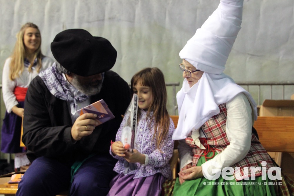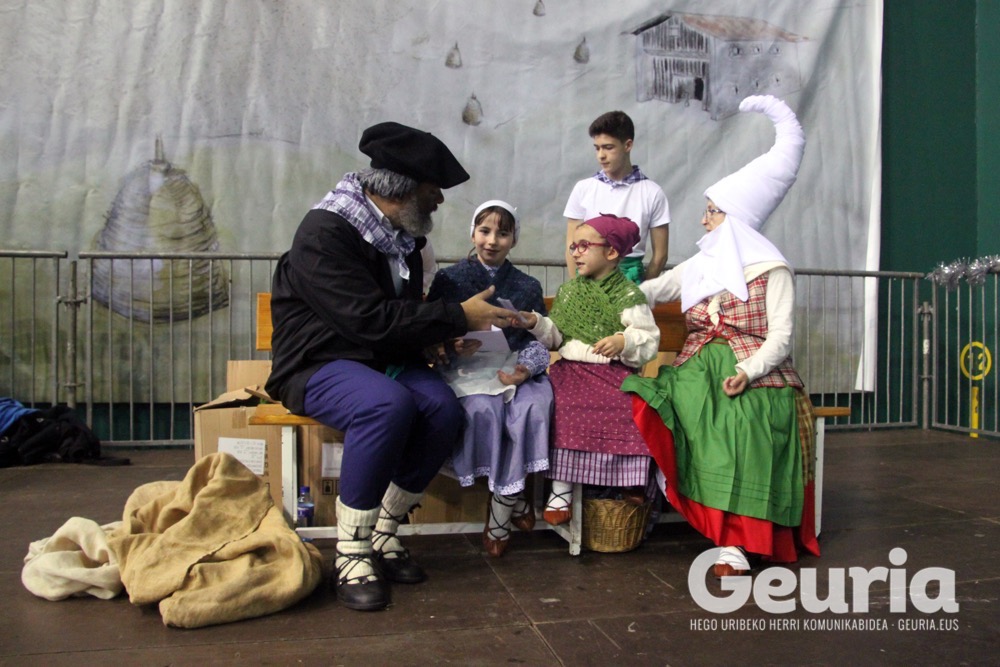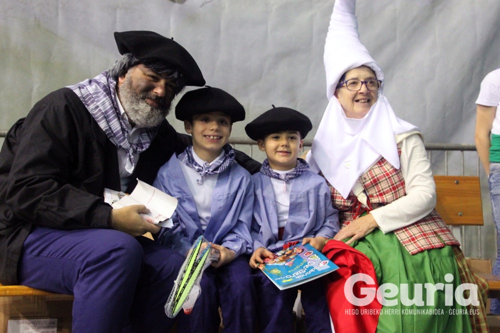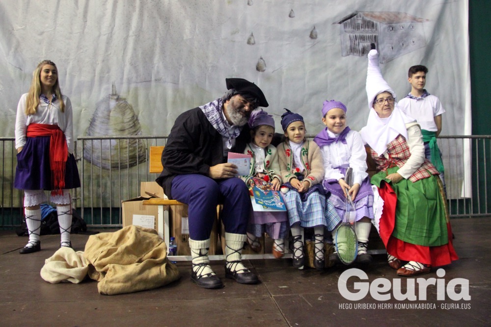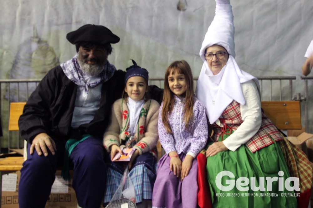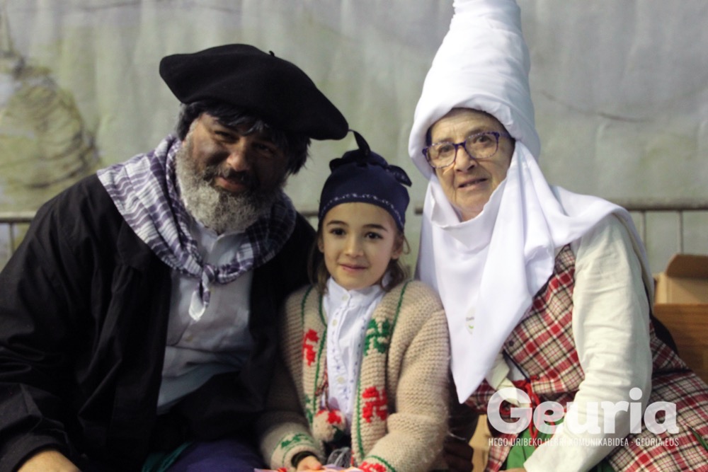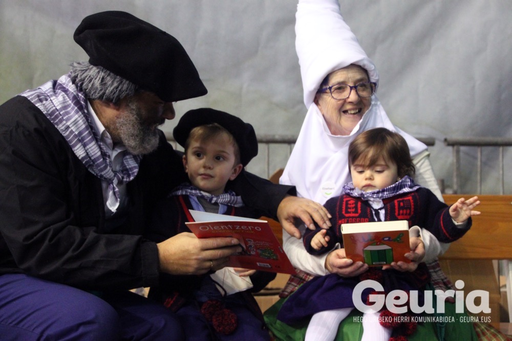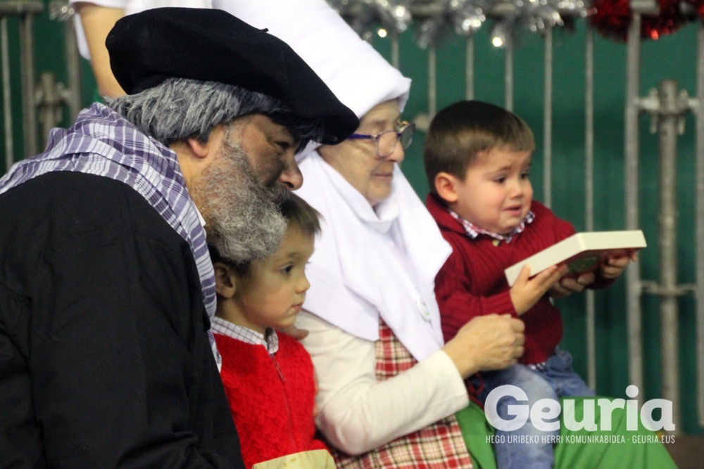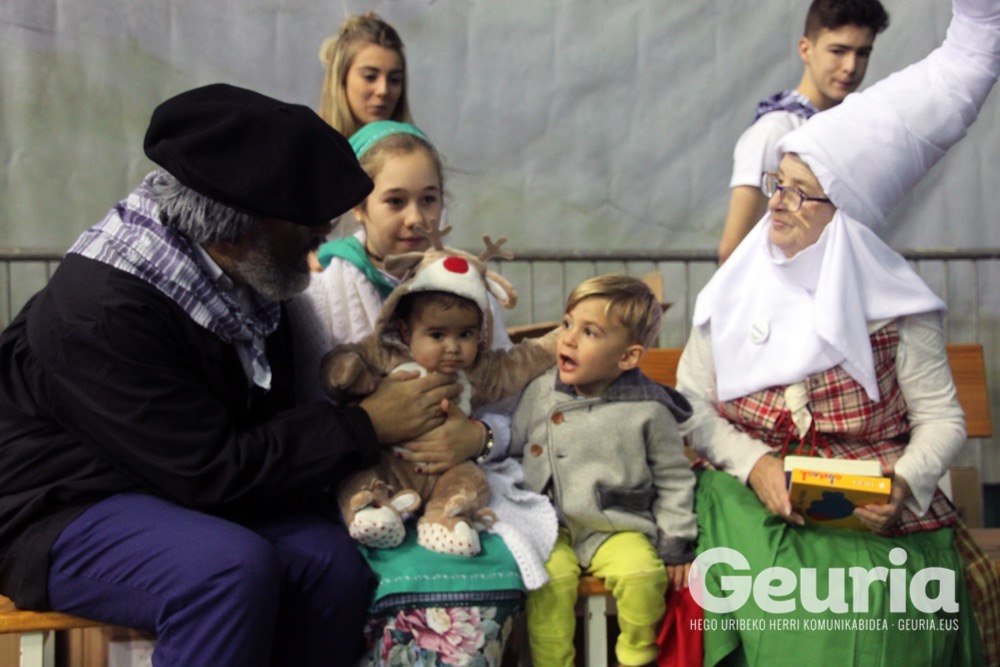 Abenduaren 24an, goizez, iritsi dira Olentzero eta Mari Domingi Etxebarrira. San Antoniotik jaitsi dira galtzagorriez, joaldunez eta milaka herritarrez lagunduta. Ondoren frontoian, harrera egin diete umeei eta opariak banatu dituzte.