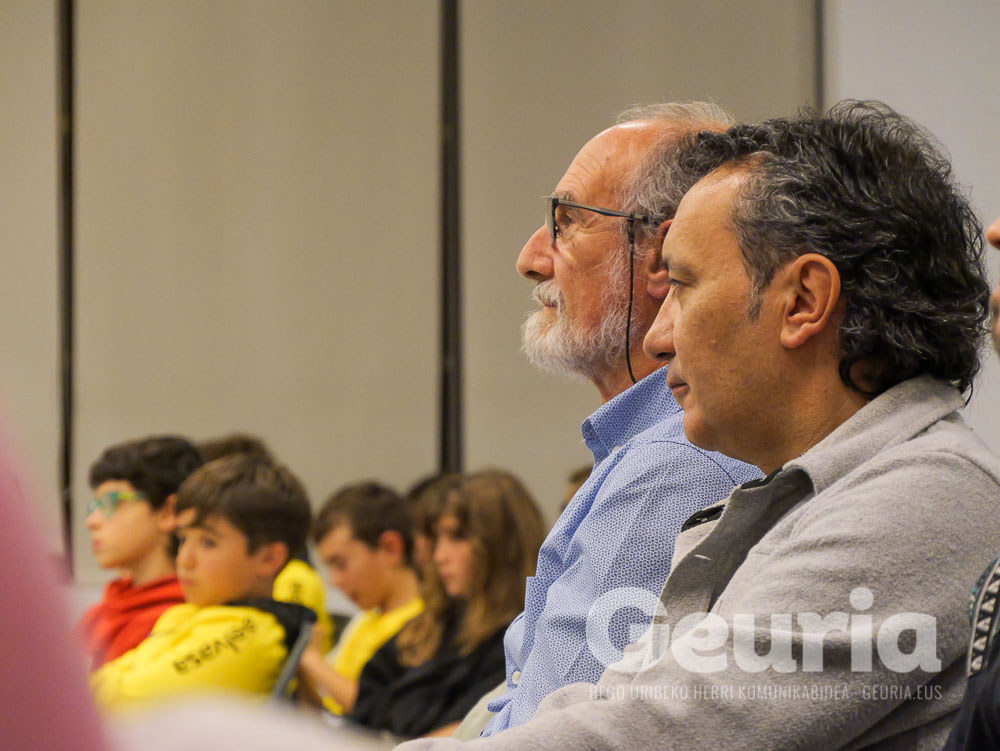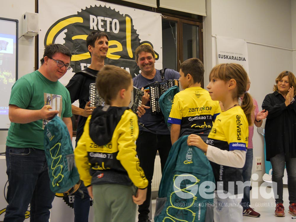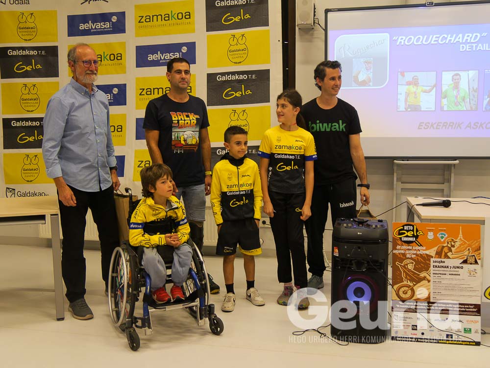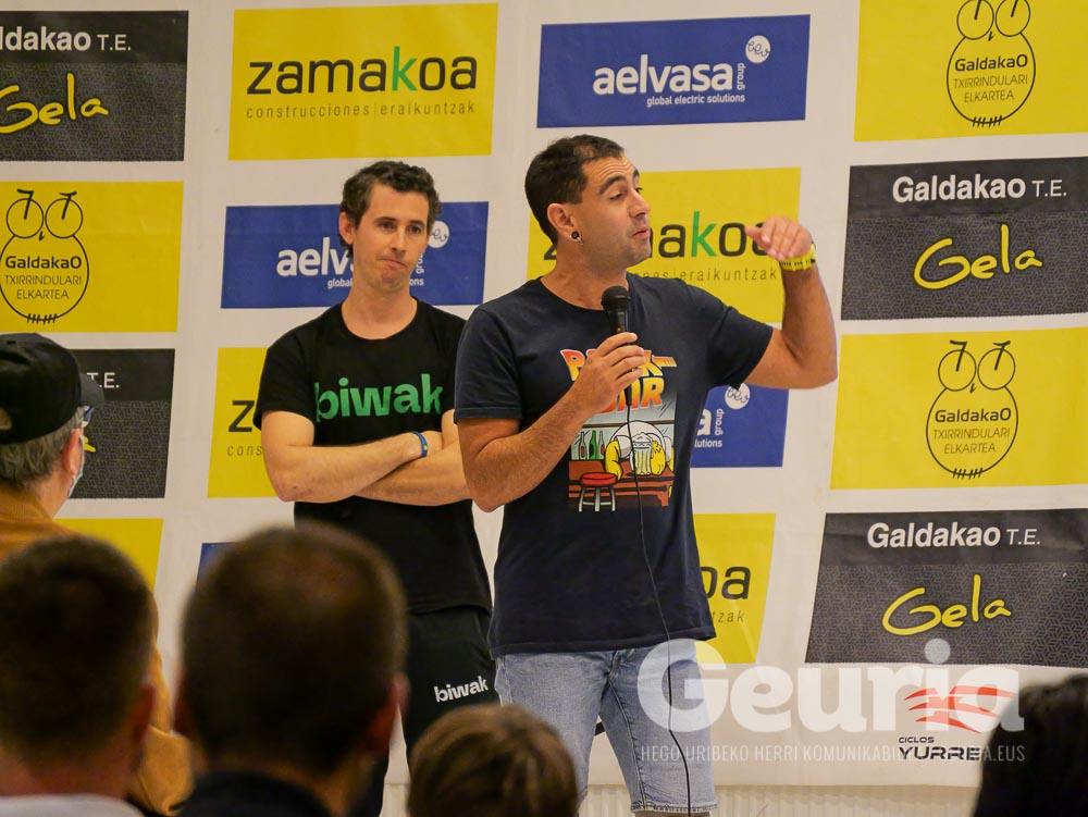 Pedro Mari Aizarna Bizkaiko Mendi Federazioko presidentea (galdakoztarra hau ere) eta Aitor Gonzalez Bizkaiko Kirol Egitua Federazioko presidentea (Etxebarrikoa hau) ere egon ziren aurkezpenean.