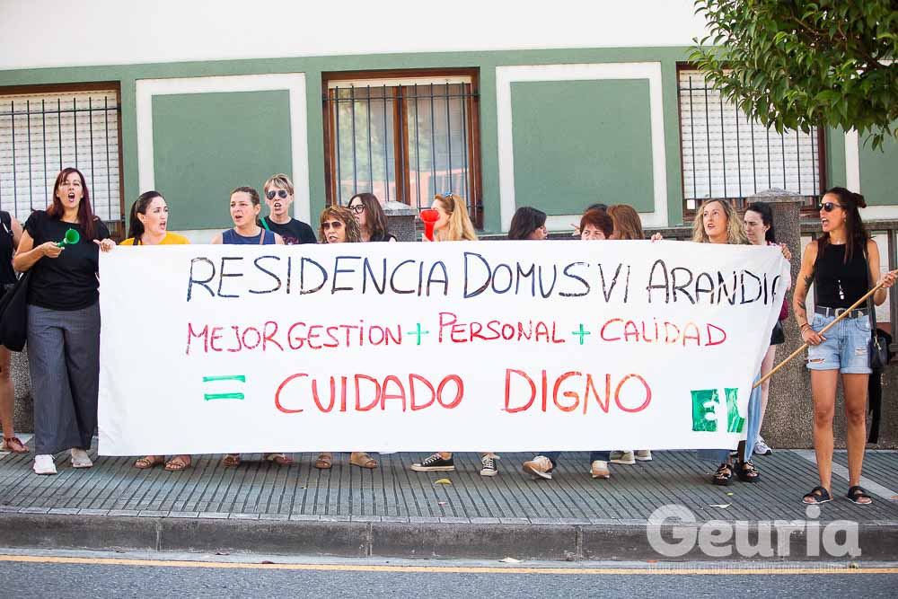 Domus VI Arandia taldeko adineko egoitzeko langileek hiru eguneko greba hasi dute: “Osasuna arriskuan dago” dioen pankarta batekin hasiera eman zioten atzo grebari eta abenduaren 4ra bitartean horrela jarraituko dute. Langileek kudeaketa hobeagoa, langile gehiago eta kalitatezko zaintza eskaintzen dute.