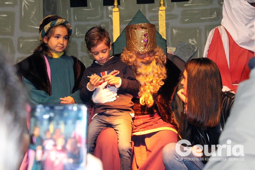 Postari errealarekin batera heldu dira Arkotxara Errege Magoak. Txarrota Kultur Elkartearen eskutik txokolatea auzotarren artean banatu eta gero, Meltxor, Gaspar eta Baltasar errege magoek gozokiak banatu dituzte.