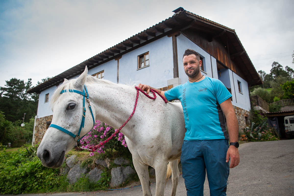 Laneko bisitariak, familiak, eskolako haurrak… zenbat bisita jasotzen dituzue urtero? Gure bisitarien profila zehaztea zaila da, oso anitza delako: gazteak, bikoteak, helduak… turismoaren esparrua ustiatzen duten bestelako enpresak bezala, uda garaia izan ohi da denboraldirik emankorrena gure baserrian. Udaberritik aurrera eskolako haurren bisitak izan ohi ditugu. Ikasturtea amaitu bezain pronto oporretako bisitak heltzen hasten dira: kuadrillak, bikoteak, familiak… Gainera, turismo aktiboa sustatzeko aukera ematen digu baserriak, eta jende asko ere arrazoi horregatik hurbildu egiten da gurera, zaldiek eskaintzen duten alderdi terapeutiko hori bizitzera, hain zuzen ere: animaliek asko transmititzen dute eta guk ere alderdi hori erakutsi nahi diegu. Azken batean, komunikabide askok zaldiek soilik korrika egiteko balio duten ideia saldu digute eta ekarpen gehiago egiten dituzte. Jendea pozik itzultzen da etxera esperientzia bizi ostean.