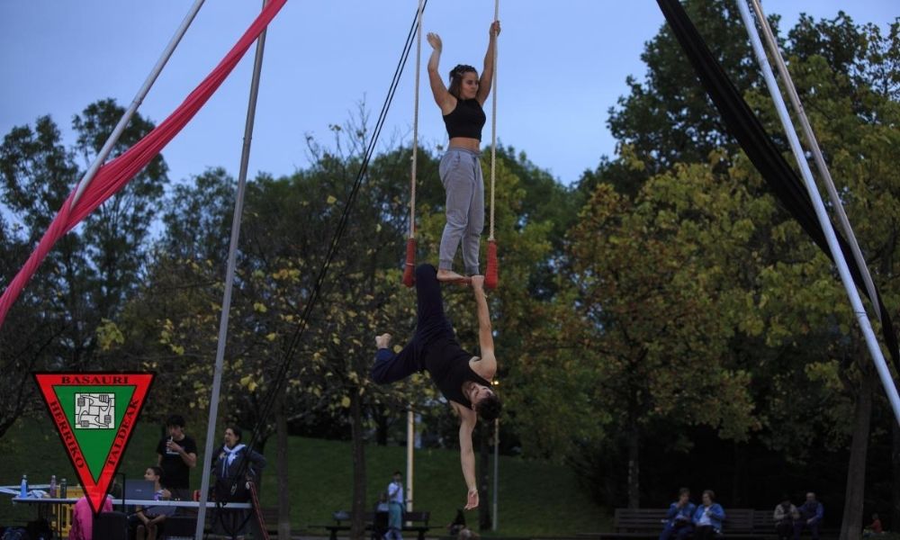 Iaz Basauriko jaietan egin zenuen emanaldia Artista Lokalen Egunean, eta aurten San Migeleko jaietan. Bai! Urduritasunarekin baina emozioz bizi nituen bi emanaldiak. Jende ezagun asko egongo zela uste nuen eta nire akrobata taldearekin dena ondo ateratzeko ardura nuen, harrera ona izan zezaten. Aldi berean, aukera bat izan da inoiz zirku-ikuskizunik ikusi ez duen jendeari diziplina artistiko hau ezagutarazteko eta, beharbada, gazteren bat motibatuta senti daiteke arte eta kirol hau probatzeko, oso ezaguna ez dena.
