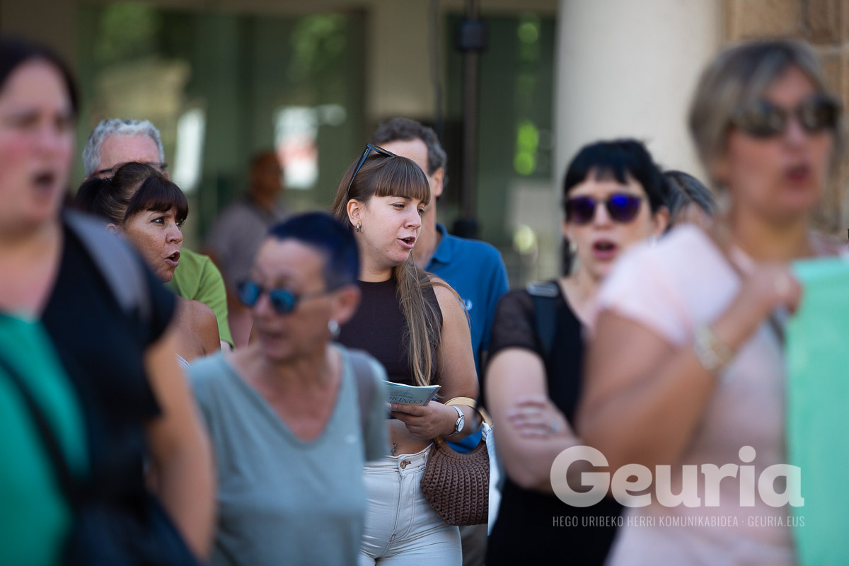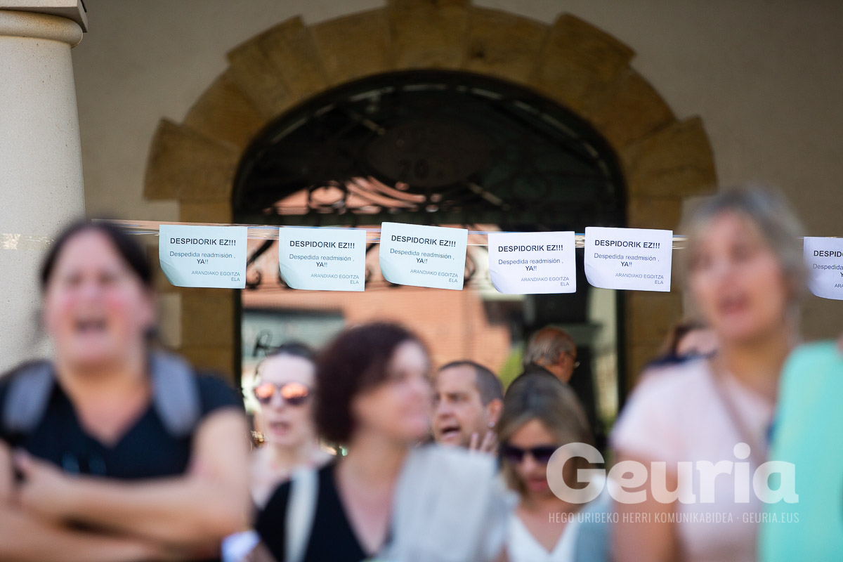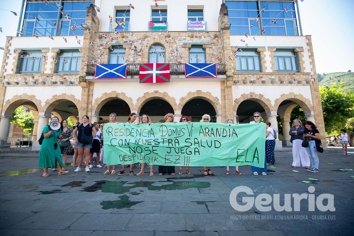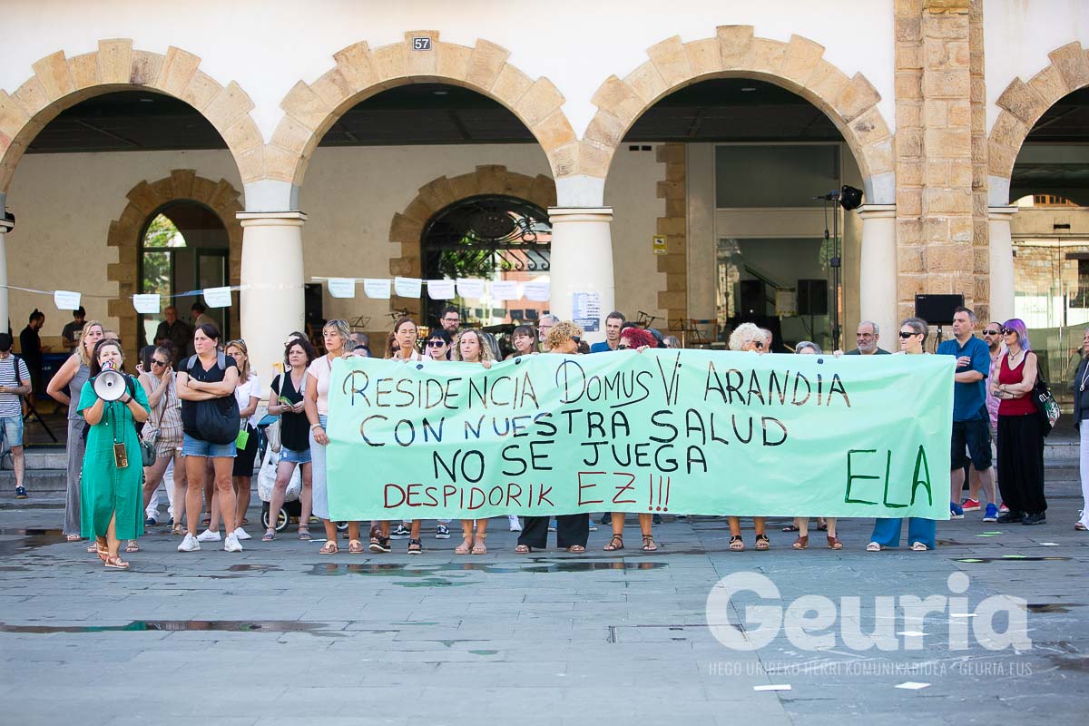 Gaur eguerdian dozenaka pertsona Arrigorriagako udaletxeko plazara hurbildu dira Domus VI taldeko Arandia egoitzako “lan segurtasun eta osasun berme falta” salatzeko.