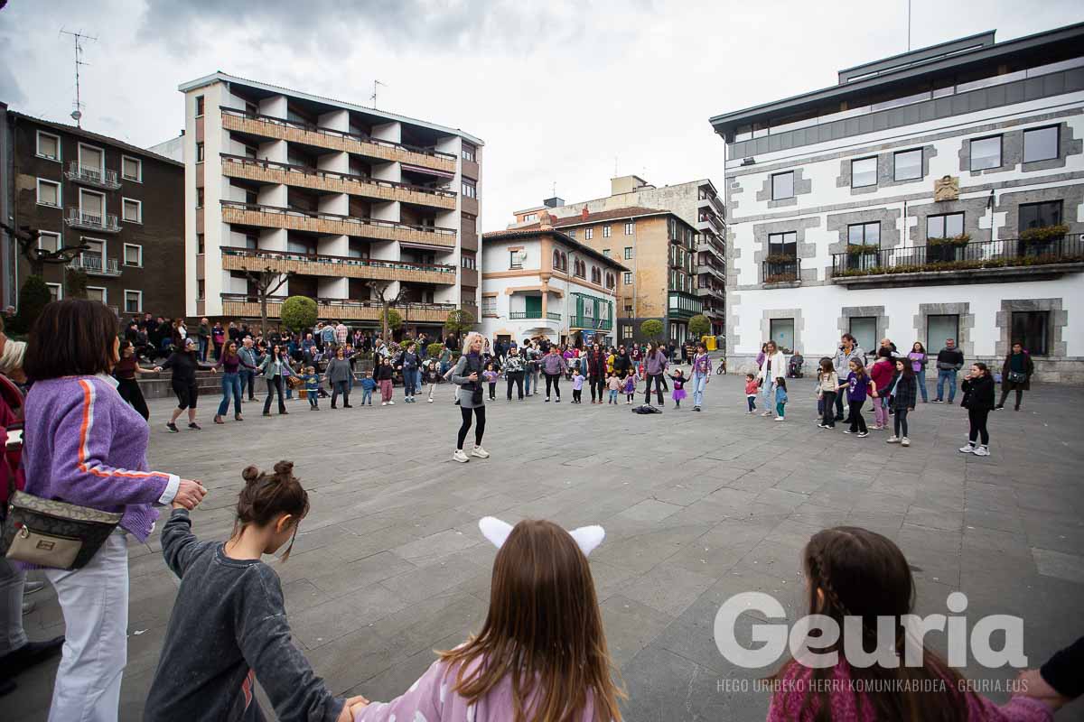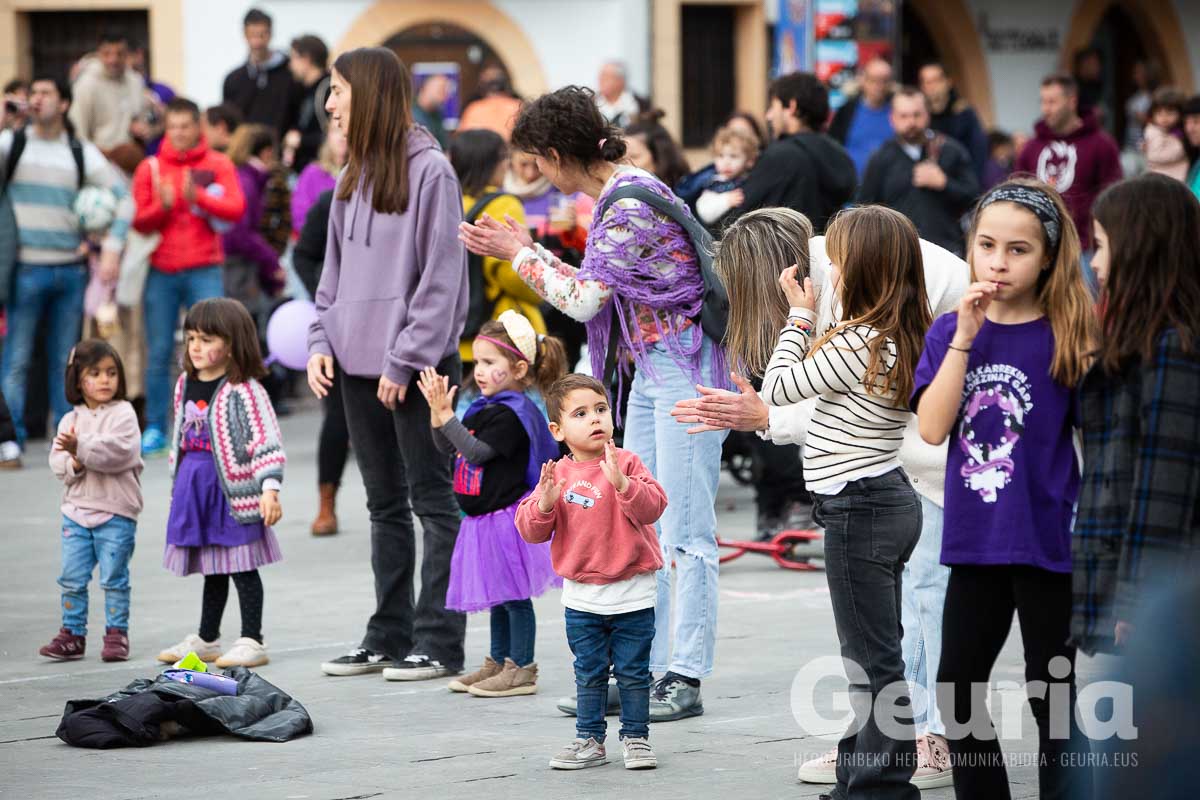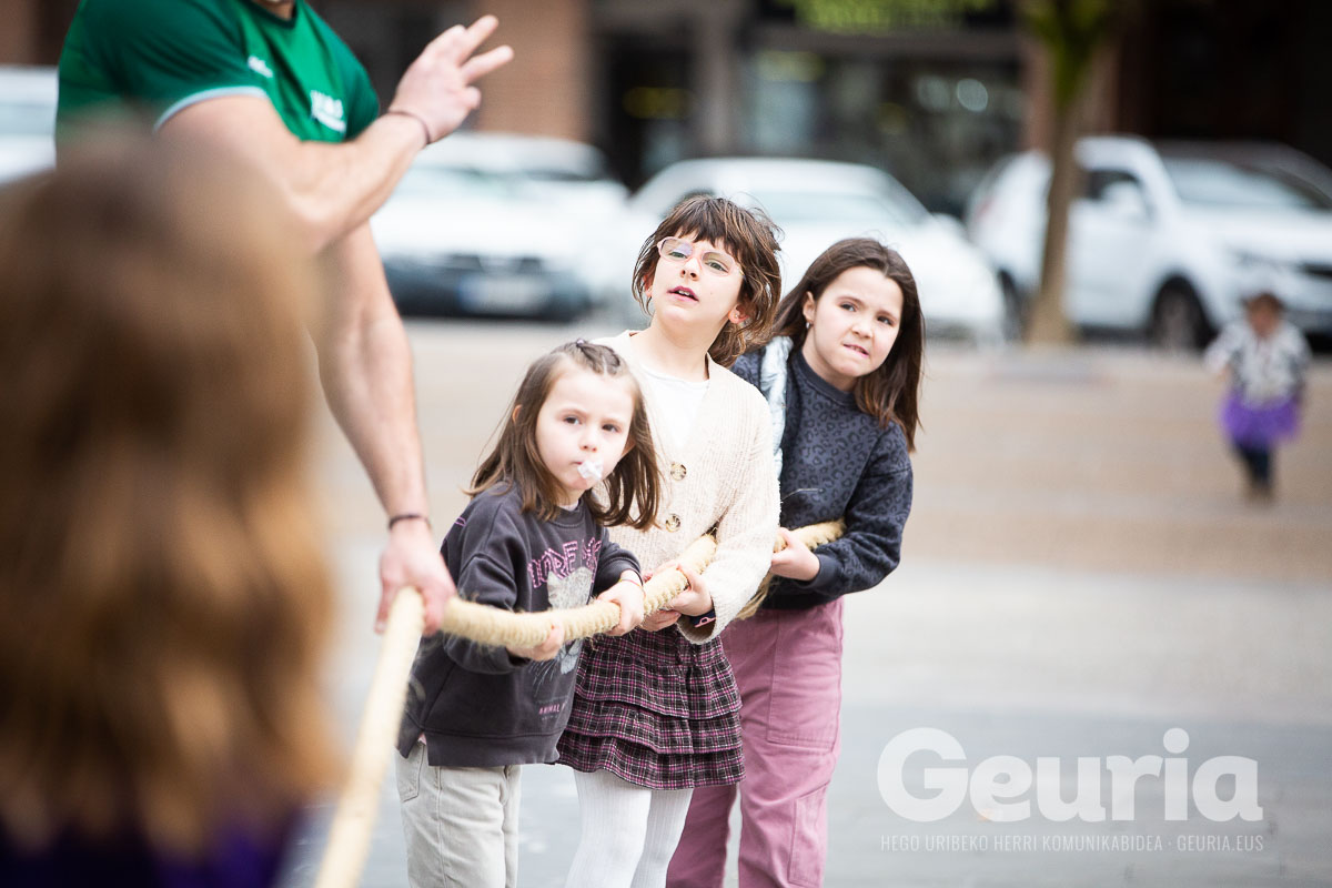 Emakumeok Plazara! izeneko ekitaldiak martxa, herri kirolak eta musika ekarri ditu Arrigorriagako udaletxeko plazara, goiza eta arrastiko lehen orduak girotzeko