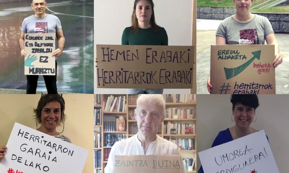 “Konfinamendu bitartean Gure Eskuk ‘Gelditu.Hausnatu.Erabaki’ solasaldi digitalak antolatu ditu, norantz jo nahi dugun hausnartzeko. Orain, fase berri honetan, gure aldarrikapenek plaza publikoa berreskuratzeko garaia dela uste dugu”, diote Gure Eskutik: “Premiazkoa da bizi dugun eta datorren krisiari Euskal Herritik eta guztion artean erantzun behar diogula adieraztea, eta tokiko erabaki burujabeak aldarrikatzea”.