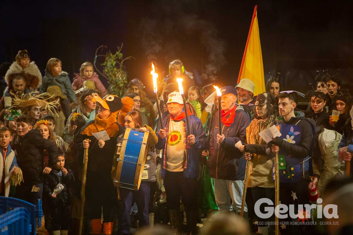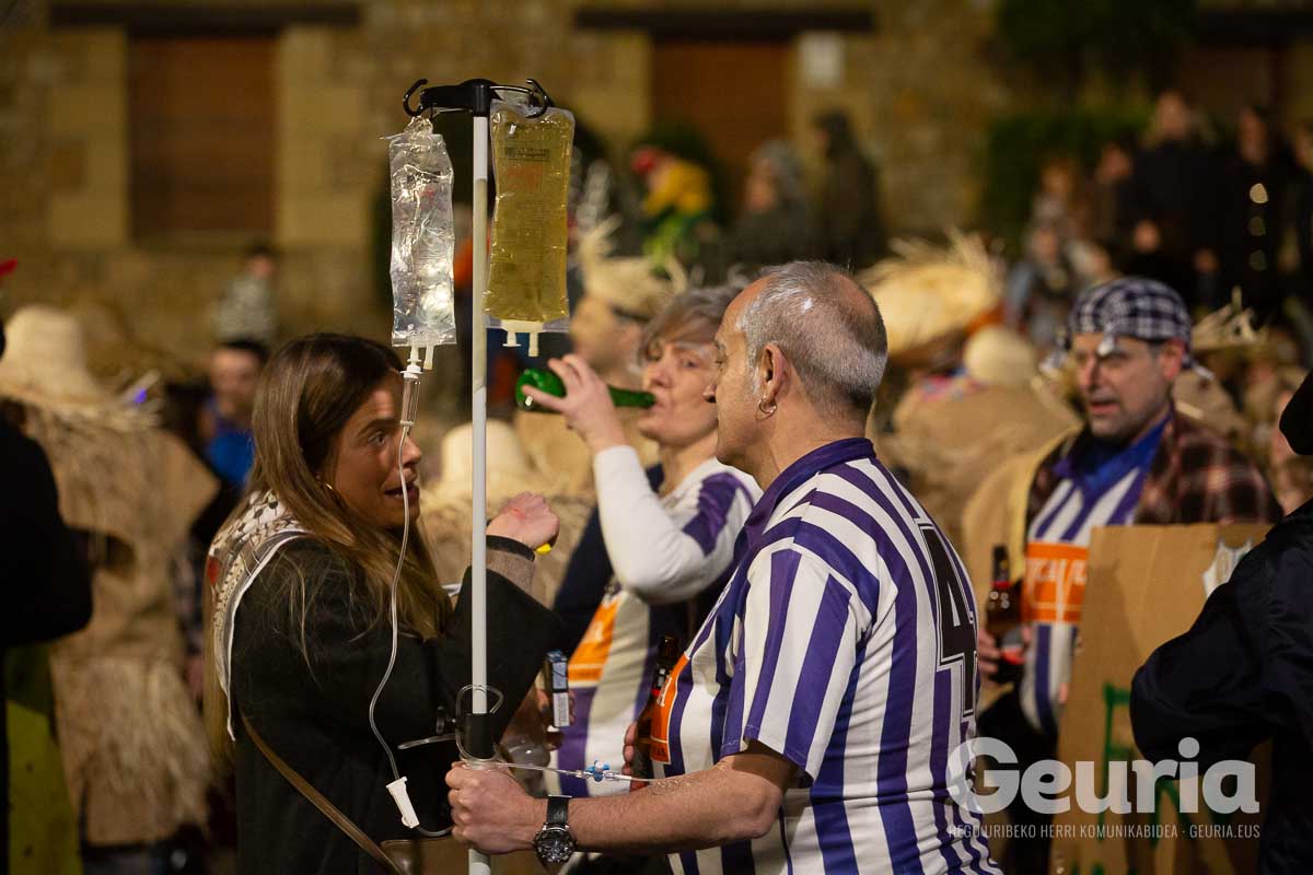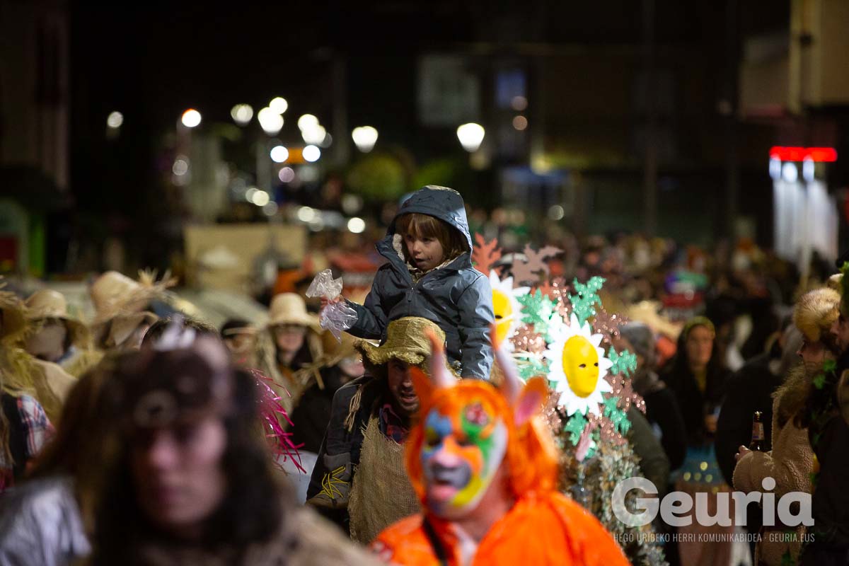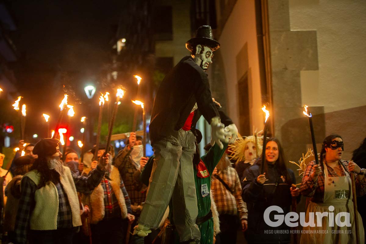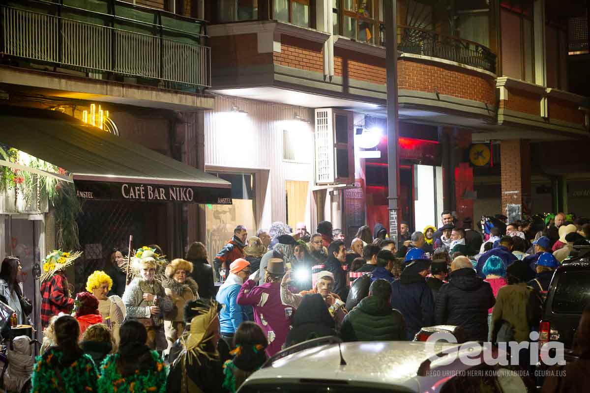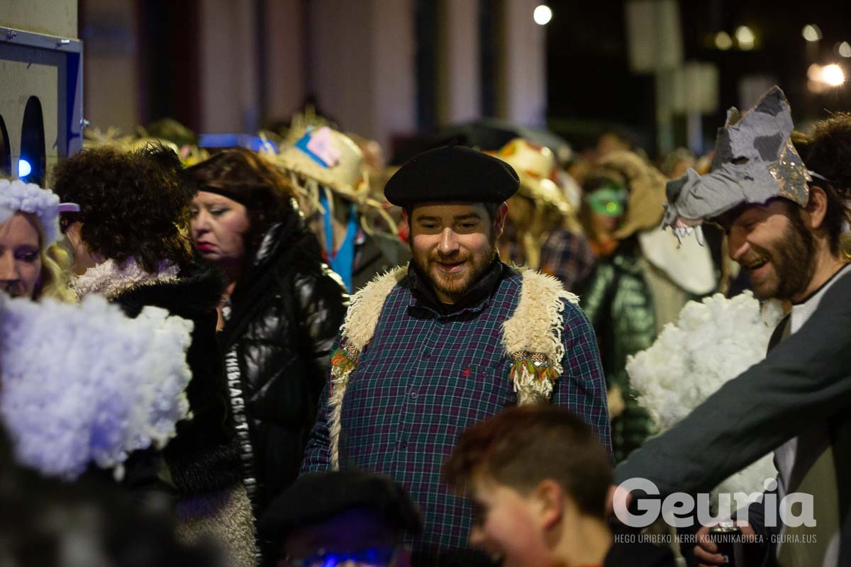 Gaur goizean inauteriak girotzen hasi dira eta arrastirako bero-bero egon da giroa herrigunean. Elkarretaratzearen ostean (eta iragarritakoa baino zertxobait lehenago), kalejira hasi dute Odolemaileen plazatik. Bertatik Urgoiti pasealekura igaro dira eta artez artez udaletxeko plazara heldu dira.