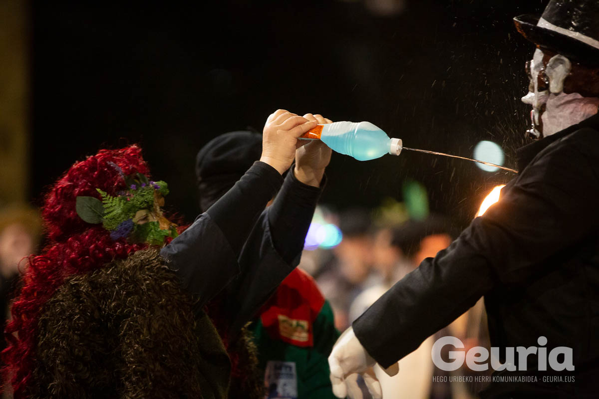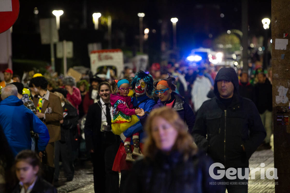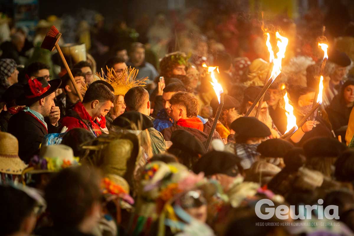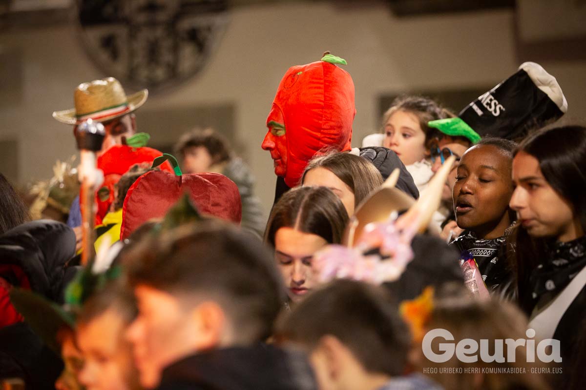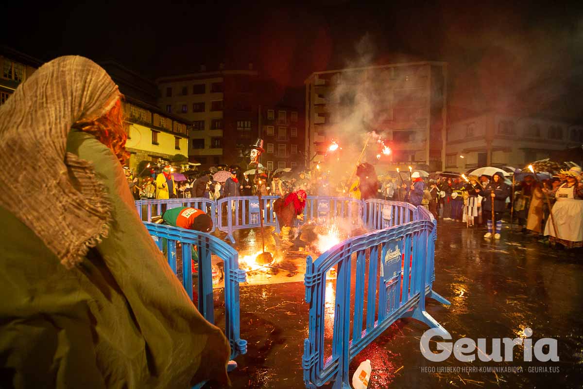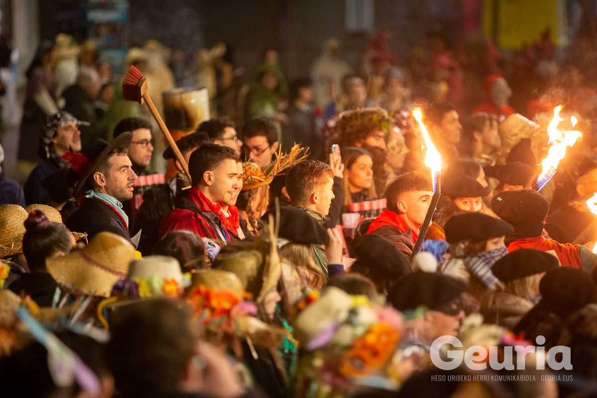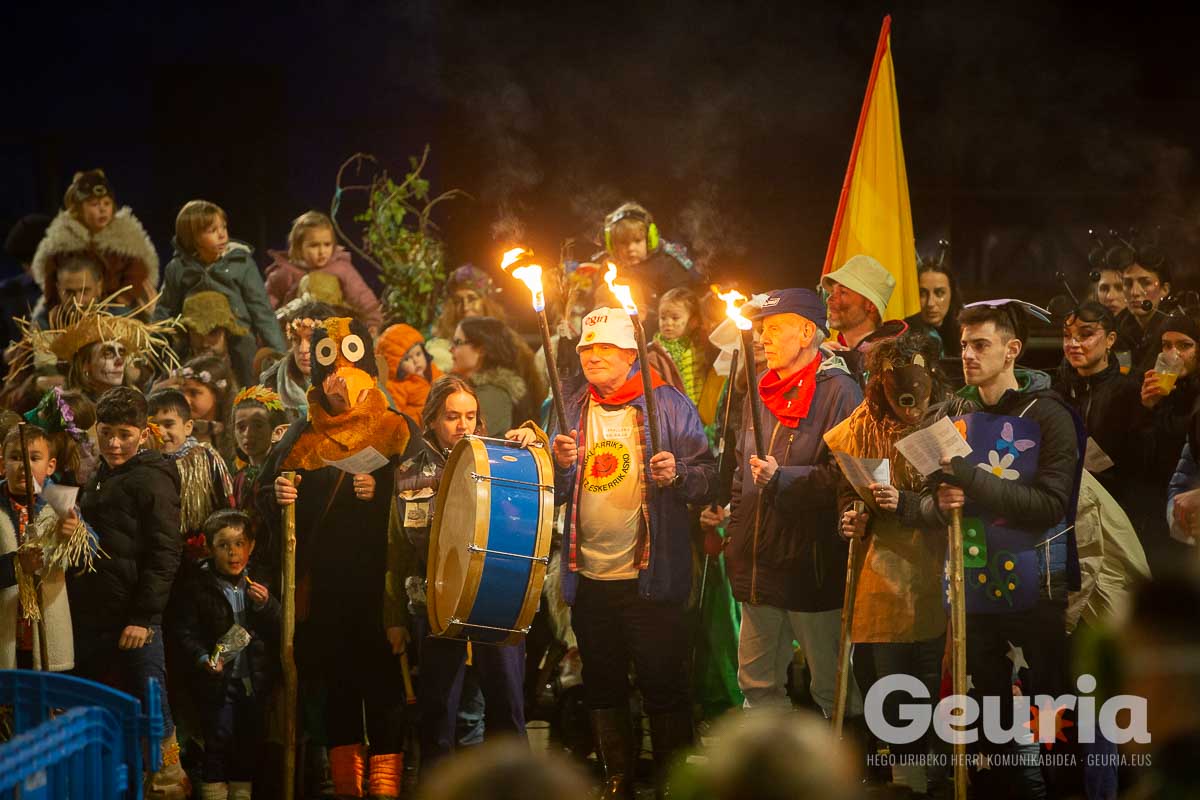 Gaur goizean inauteriak girotzen hasi dira eta arrastirako bero-bero egon da giroa herrigunean. Elkarretaratzearen ostean (eta iragarritakoa baino zertxobait lehenago), kalejira hasi dute Odolemaileen plazatik. Bertatik Urgoiti pasealekura igaro dira eta artez artez udaletxeko plazara heldu dira.