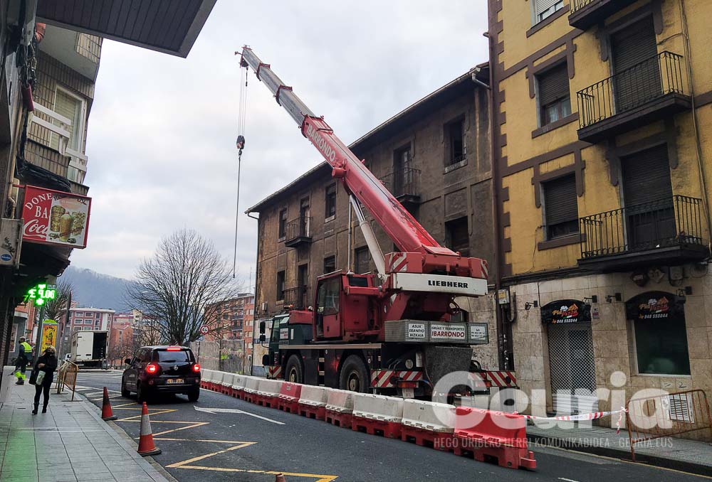 Basauriko Agirre Lehendakaria kaleko 31. zenbakiko etxebizitza eraisten hasiko dira gaur. Zenbait garabi daude inguruan eta errepidea estutu behar izan dute -errei bat soilik erabilgarri dago-.