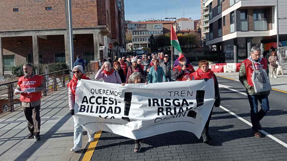 Bizkaiko eta Aiaraldeko Pentsiodunen Mugimenduko 54 pertsona elkartu dira joan den abenduaren 1ean, Basauriko Bidebieta tren geltokian, 12:00etan. Helburua Renfeko C3 linean irisgarritasuna aldarrikatzea izan da mugikortasun urriko pertsonentzat.