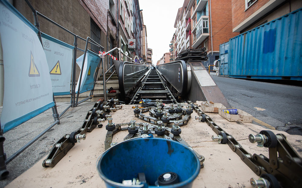 Landa Doktorren kaleko arrapala mekanikoak duela 23 urte jarri zituen Basauriko Udalak: “Gure udalerria irisgarritasunaren alorrean aitzindari bihurtu zen arrapala mekanikoekin”, diote.
