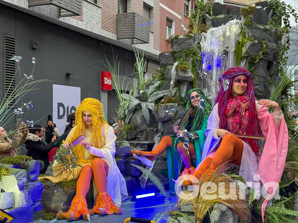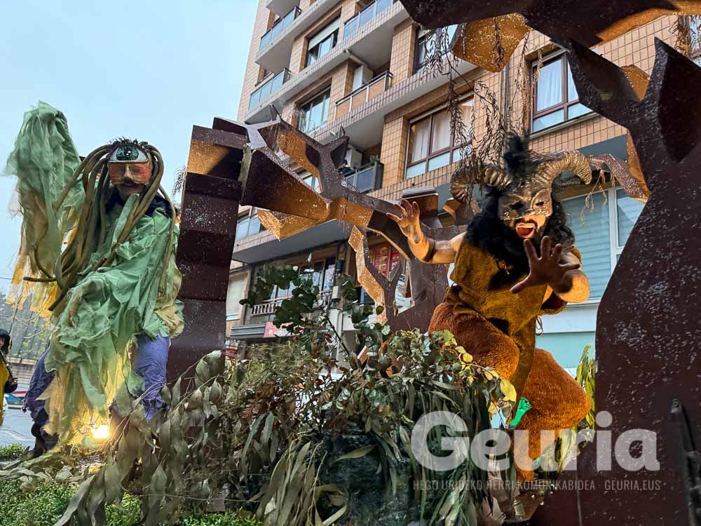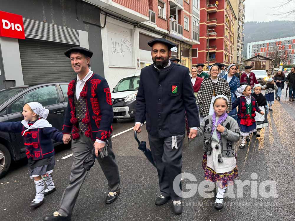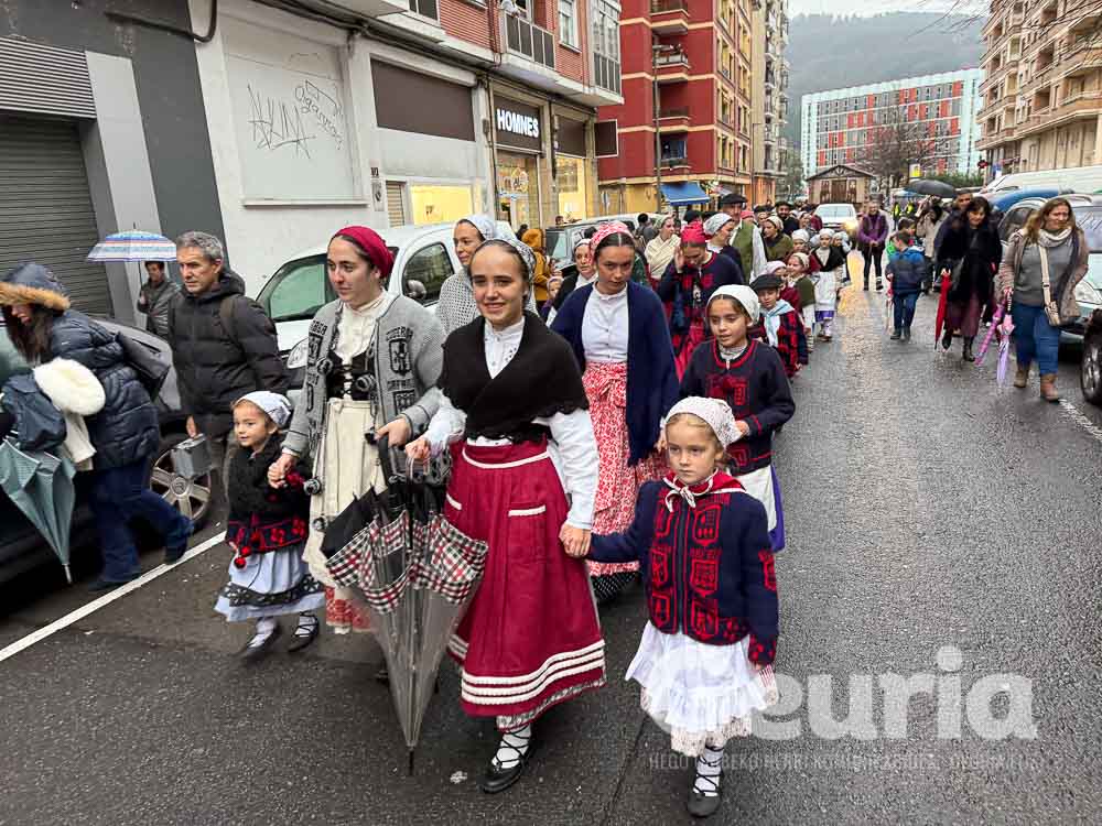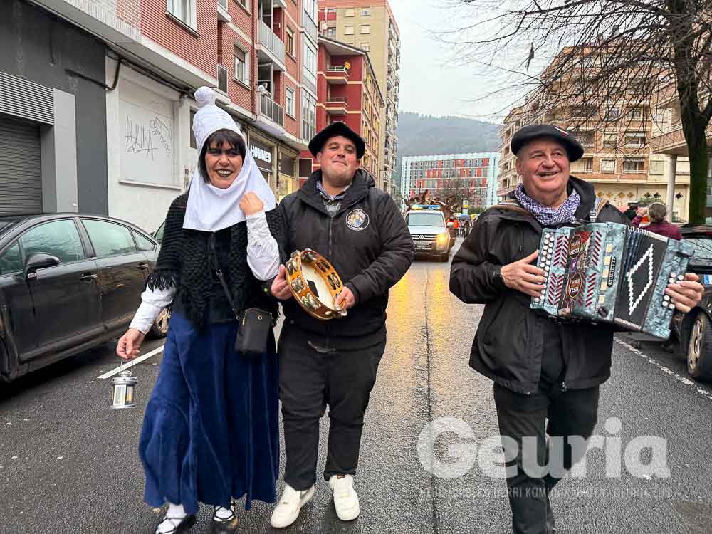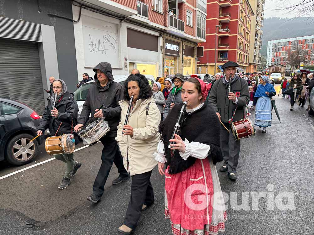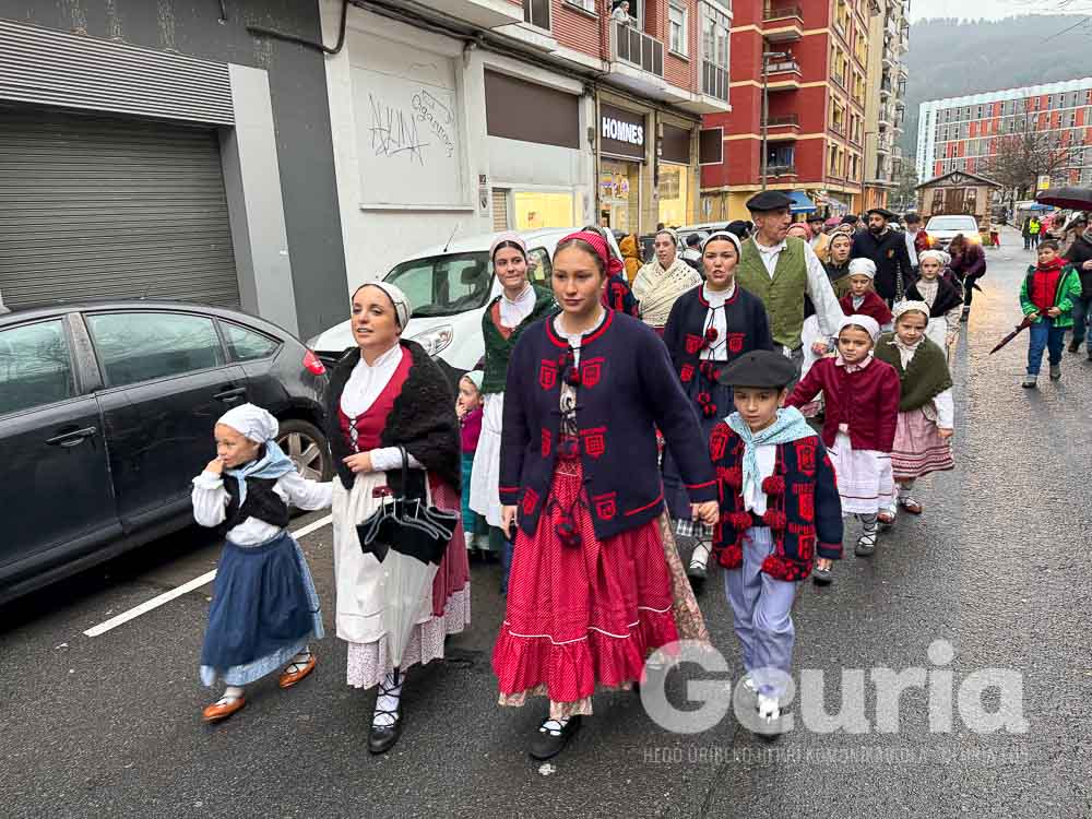 Euriak ez du zapuztu Olentzeroren eta Mari Domingiren kalejira Basaurin. Galtzagorriak, dantzariak, Mari eta Sugaar, eta Basajaun lagun izan dituzte bidean, baita kalejirara batu diren herritarrak ere.