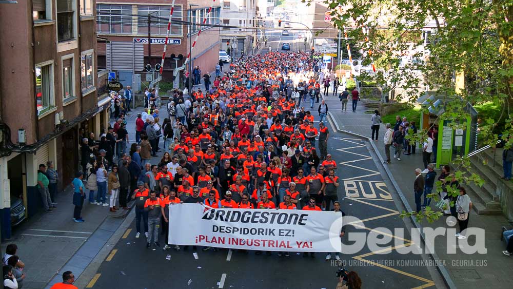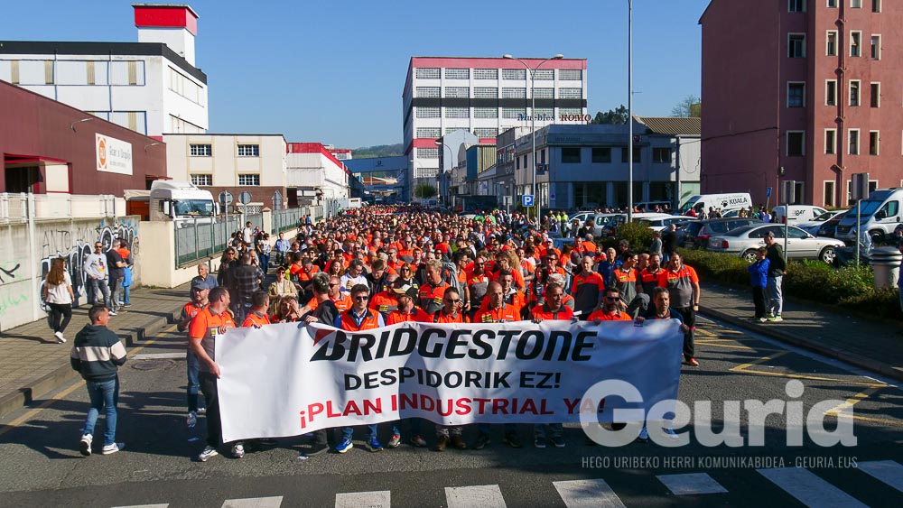 Bridgestoneko langileez gain, 3.000 herritarrek egin dute bat mobilizazioarekin: gehienak Basauriko herritarrak, baina eskualdetik ere etorri dira, hala nola, Galdakaotik eta Etxebarritik.