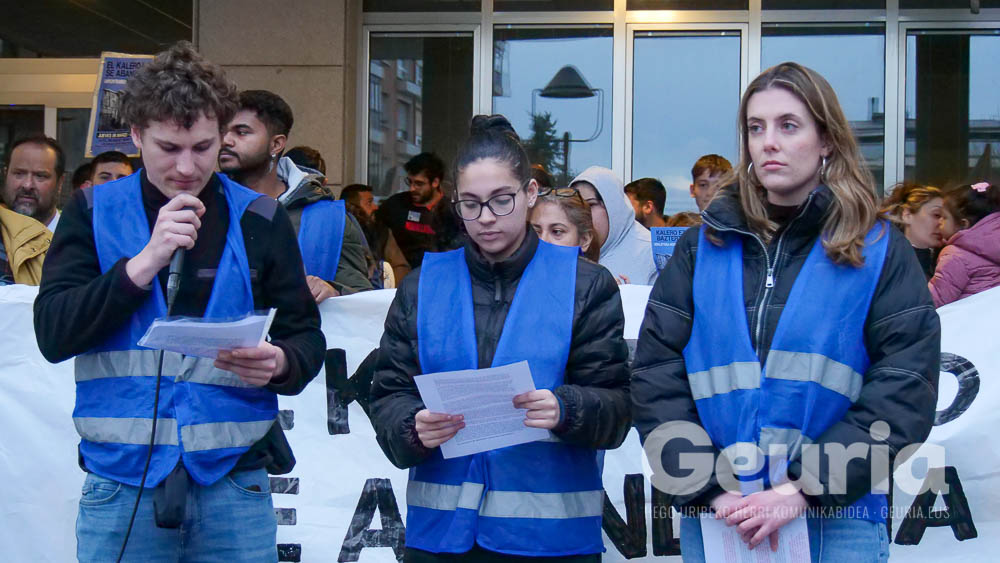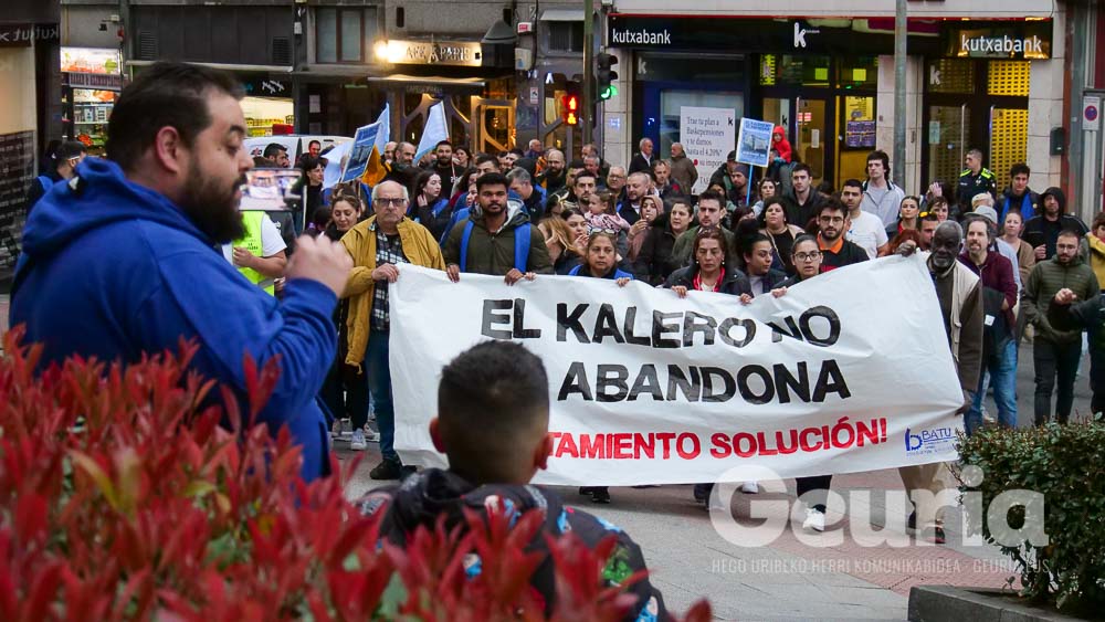 Kareaga Goikoa 1, 5 eta 7 etxebizitza ondoan hasi dute manifestazioa eta udaletxean bukatu dute. Bertan Batuko ordezkariek eta bizilagun batek adierazpena irakurri dute eta azken honek adierazi du gaurko gaua udaletxeko arkupeetan igaroko dutela.