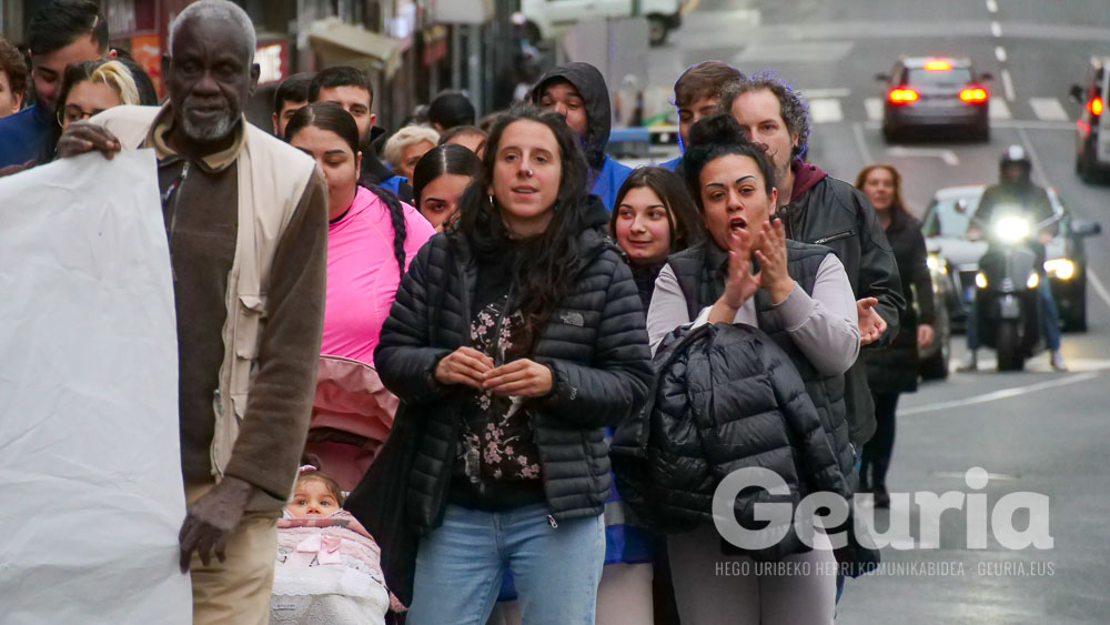 Manifestazioa egin dute gaur Kareaga Goikoako sutean kaltetutako familiek eta amaieran adierazi dute “momentuz, udaletxeko arkupeetan geratuko direla lotan, irtenbide bat lortu arte”