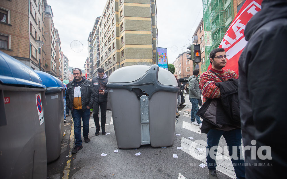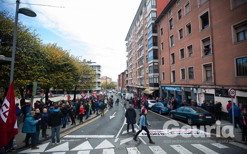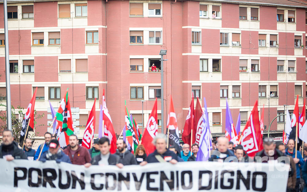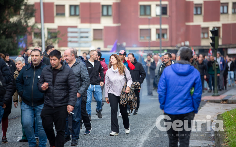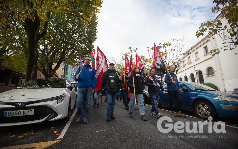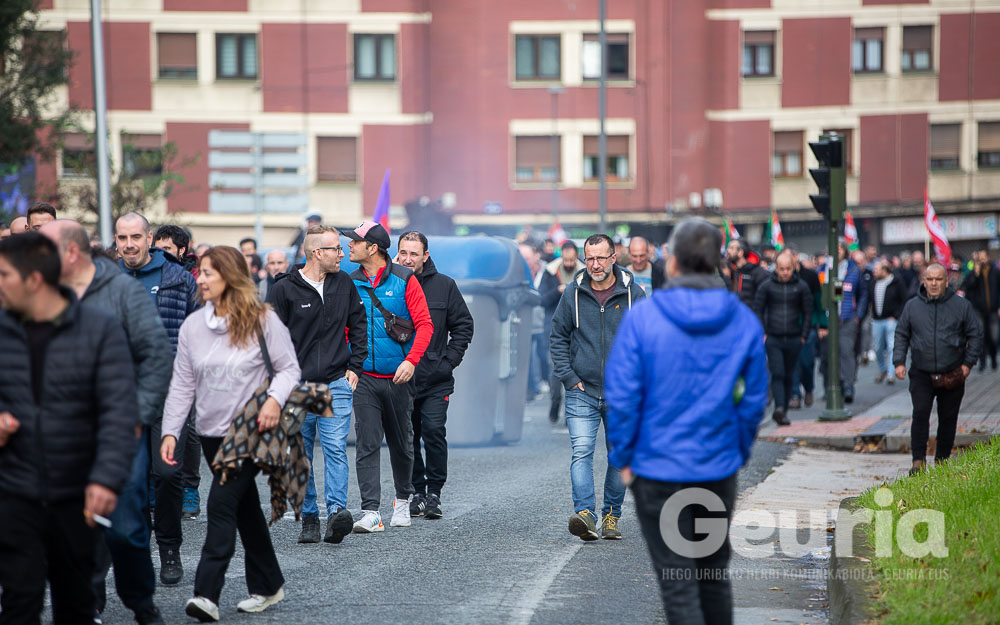 “Hitzarmen duin batengatik, Bizkaiko Metala greban” lemapean Basauriko kaleak zeharkatu dituzte. Bidean, petardoak sartu dituzte edukiontzietan eta horietako batek su hartu du begiratokietan. Ondorioz, Basauriko suhiltzaileen parkeko kamioi bat gerturatu da sua itzaltzera. Martxan “Hitzarmenik gabe bakerik ez”, “Urkullu, cabrón, trabaja como un peón” edo “Gora Bizkaiko metalaren borroka” bezalako ohiuak entzun dira.