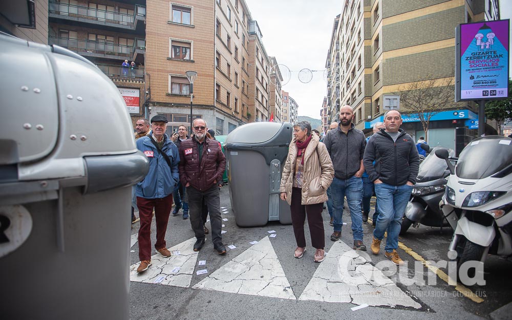 Pentsiodunen Mugimenduko kideak, Basauritik egindako manifestazioan // Pentsiodunen Mugimendua