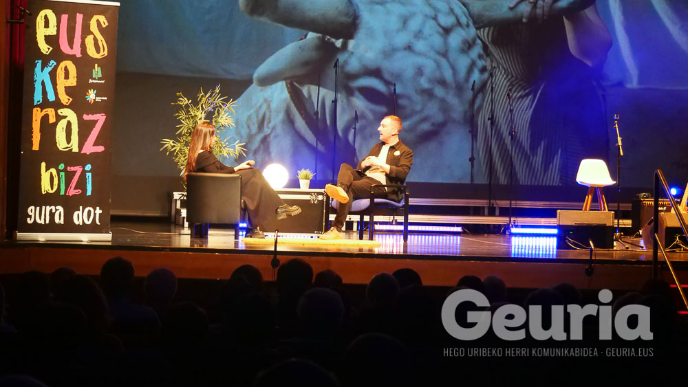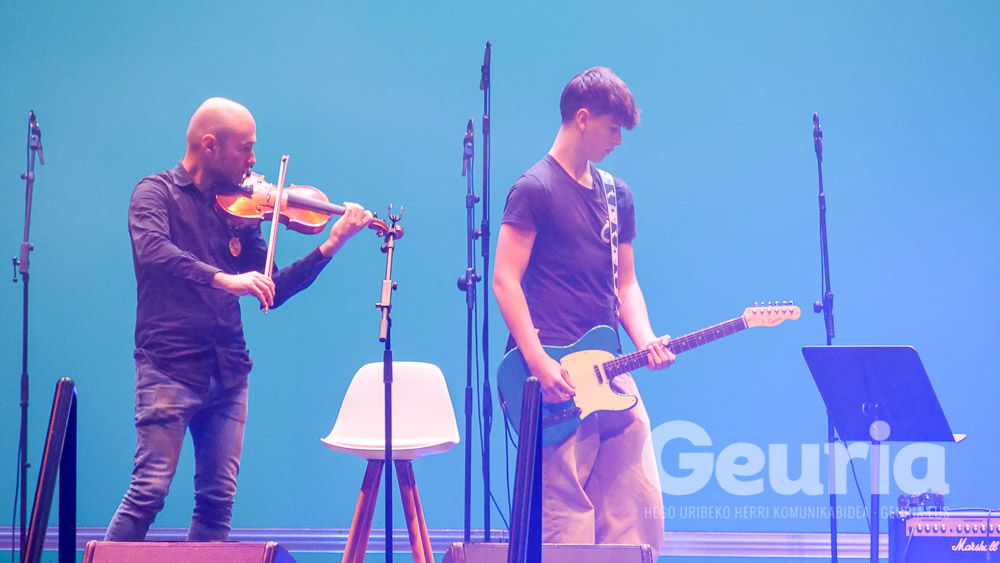 Argazkiak | Gatibuko Alex Sardui eta Mirua taldeko Maitane Iruiñ Basauriko Musika Eskolaren ekitaldian izan dira