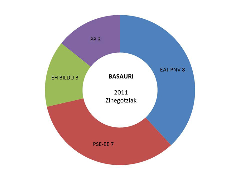 Alderdi jeltzaleak 10 zinegotzia lortu ditu, PSEk 4, Basauri Baik eta EH Bilduk hiruna zinegotzi eta PPk zinegotzi bakarra. Abstentzioa %39 ingurukoa izan da.