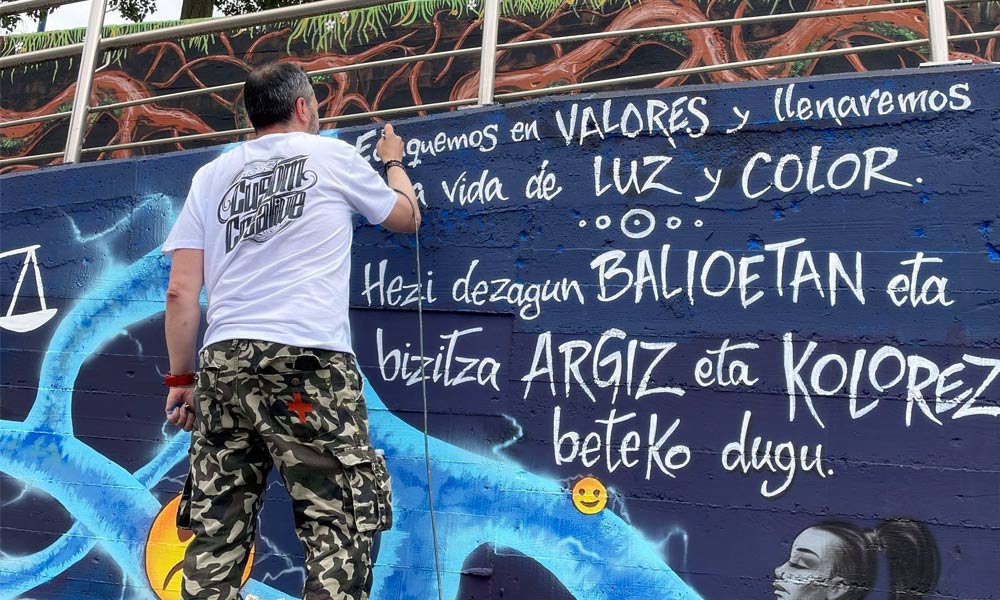 Balioetan heztearen garrantzia nabarmentzeko murala margotu dute Etxebarrin, Lezama Legizamon industrialdera sartzeko eskaileretan. Horma-irudia Dekorazio-pinturari buruzko prestakuntza jaso duten 15 ikaslek margotu dute. “Diseinuak zuhaitzen sustraiak aprobetxatu ditu honako mezua zabaltzeko: “Hezi gaitezen balioetan eta bizitza argiz eta kolorez beteko dugu”. Mezuak gizarte batek osatu behar duena islatzen du”, diote udal ordezkariek.