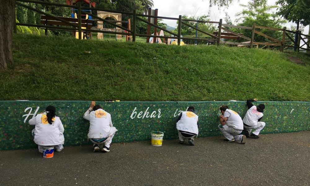 Balioetan heztearen garrantzia nabarmentzeko murala margotu dute Etxebarrin