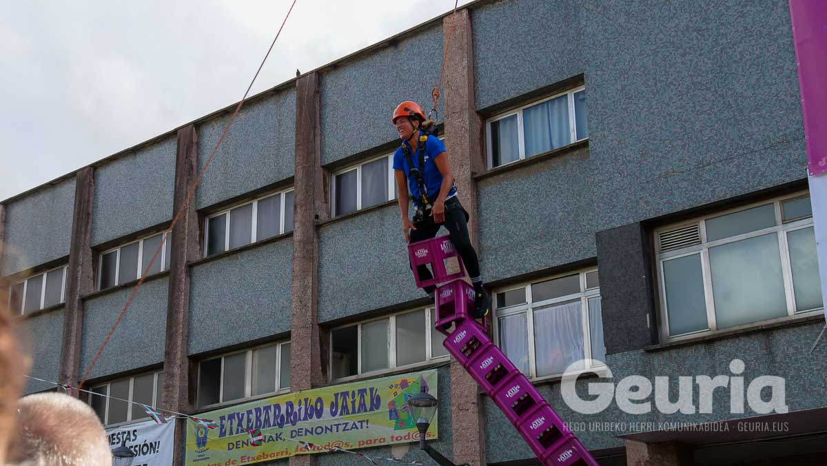 Argazkiak / Bertigorik gabe kutxa dorreak egin dituzte Etxebarriko jaietan