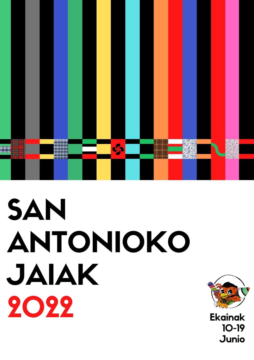 “Erabakia ez da batere erraza izan, baina azkenean Alainen kartelak irabazi du kartel lehiaketa. Zorionak lehiakide guztiei eta eskerrik asko parte hartzeagatik”, diote Jai Batzordetik. Parte hartu duten kartel guztiak San Antonioko jaien programa fisikoan agertuko dira, eta ekainaren 11n Batzordearen txosnan jarriko dituzte, “putxeren lehiaketa gastronomikoan”.