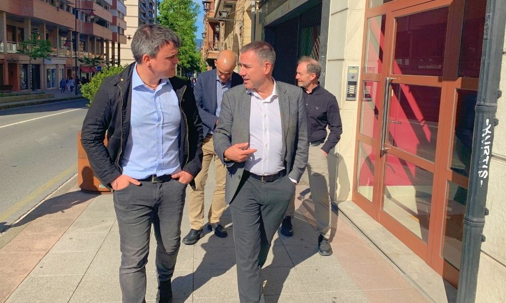 Iñigo Hernando alkatea Miguel De los Toyos Etxebizitza sailburuordearekin, Galdakaon egin duten bilera eta gero // Geuria