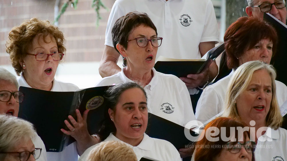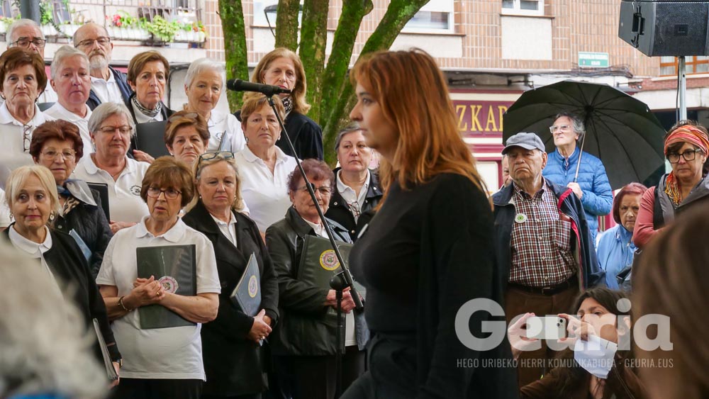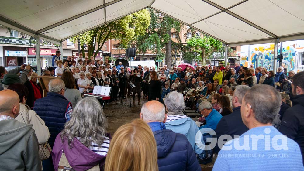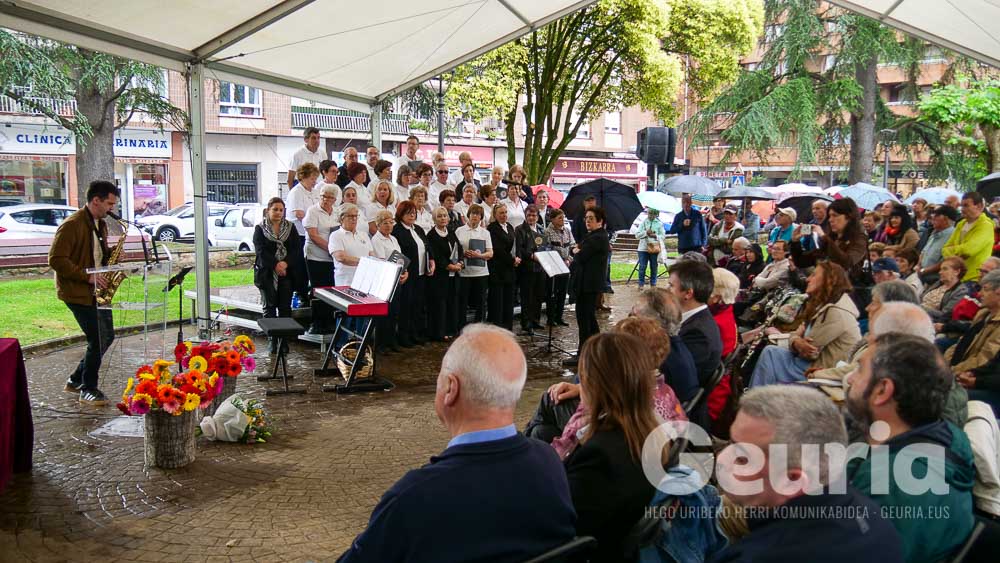 Maximo Moreno Abesbatzak eta Eneko Arraibi saxo-jotzaileak musika jarri diote ekitaldiari, June Sanchezek Agurra dantzatu du eta Trintxa Zurlanketak-eko Angel Diazek ‘Gernika’ koadroa zurez zizelkatu du eta Galdakaoko Udalari eman dio.