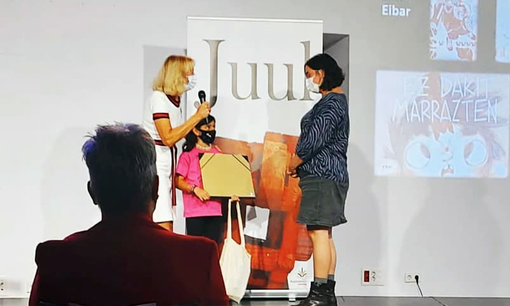 “Arte Ederrak eta Animazioa ikasi eta berehala bere ibilbide profesional oparoari ekin zion Eider Eibarrek. Ilustratzaile modura lanean dabil beste hainbat gauzarekin batera, irudigintzaren munduan beti gauza berri eta interesgarriak eskaintzeko prest baitago. Bere hitzetan, “animazioaren magiak irudiak mugimenduan jartzen ditu eta liburuetan ere hori bera egiten saiatzen naiz, ipuin ederrak lagunduz eta irudimena hegan eta dantzan jarraraziz”. Hitz ederrak benetan. Zorionak Eider Eibar!”, diote Juul egitasmoko arduradunek. Bestetik, Jon Arretxe idazle basauriarrak ere JUUL saria jaso du, Beti iparralderantz bidaia-kontakizunagatik.