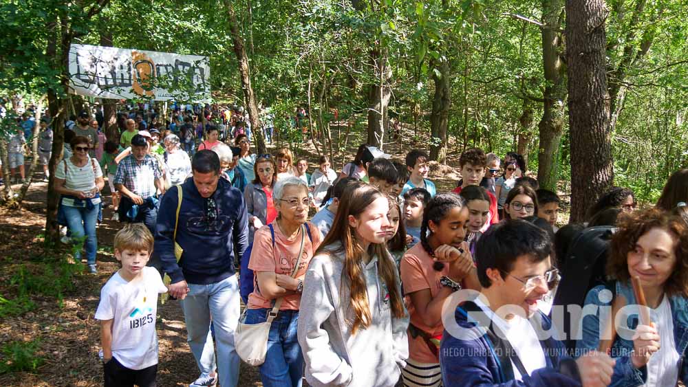 Eguzkiari begira altxatu da gaur Galdakao. Ibilaldia martxan da! Hasiera ekitaldia Pepeton izan da, jendez ingururatuta: Eguzkibegi Ikastolako ikasleak, gurasoak, irakasleak, eta Ibilaldiaz gozatzera etorri den herritarrez.