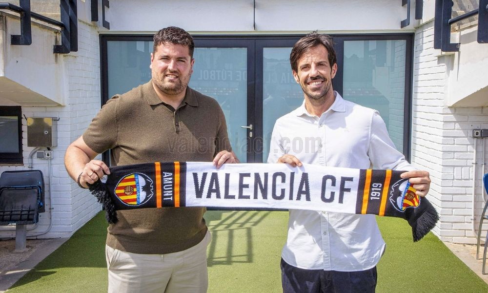 Mikel Crespo, ezkerrean, Carlos Grafiada emakumezkoen Valentzia CFko zuzendariarekin // Argazkia: Lazaro de la Peña (www.valenciacf.com)