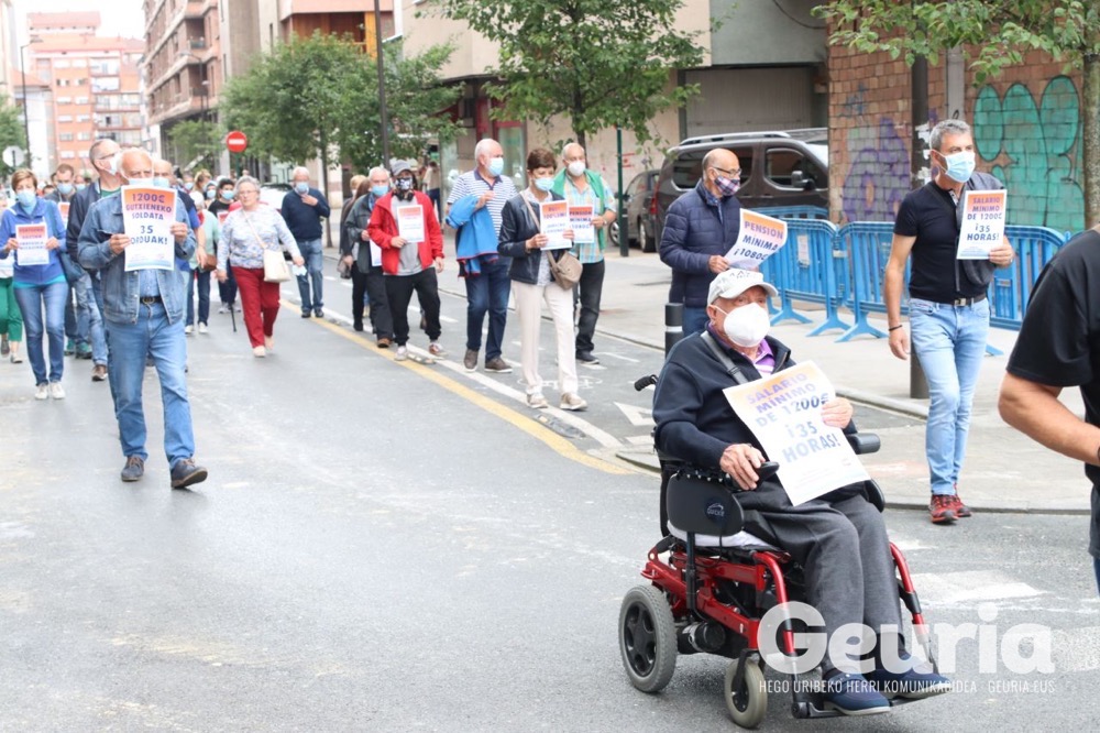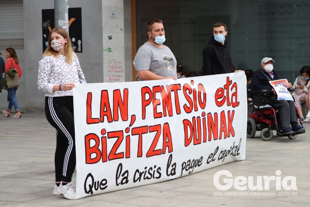 Euskal Herriko Eskubide Sozialen Kartak deituta manifestazioa egin dute Galdakaon. ‘Lan, pentsio eta bizitza duinak’ aldarrikatu dituzte.