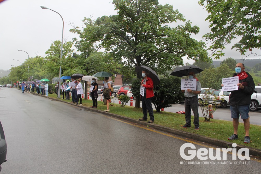 Ospitaleko sarrera nagusiaren aurrean kontzentrazioa egin ondoren, martxa laburra egin dute Larrialdi zerbitzuak dauden tokira arte, eta ondoren, Pentsionisten Mugimenduko kideek adierazpena irakurri dute: “Aste hauetan, osasun unibertsalerako eskubide bermatzeak duen berebiziko garrantziaz jabetu gara. Badakigu eskubide hau osasun publikoak soilik berma dezakeela, eta bermatzen duela. Badakigu murrizketek eta erabaki politikoek zer muga eta gabezia eragin dituzten lanpostuetan. Horregatik, orain, faserik premiazkoena gainditu ondoren, eta etorkizunari begira, osasun publikoaren aldeko apustua berretsi nahi dugu. Osasun publikoa behar dugu. Doakoa eta unibertsala. Murrizketarik edota pribatizaziorik gabeko osasuna”, aldarrikatu dute pentsionistek.