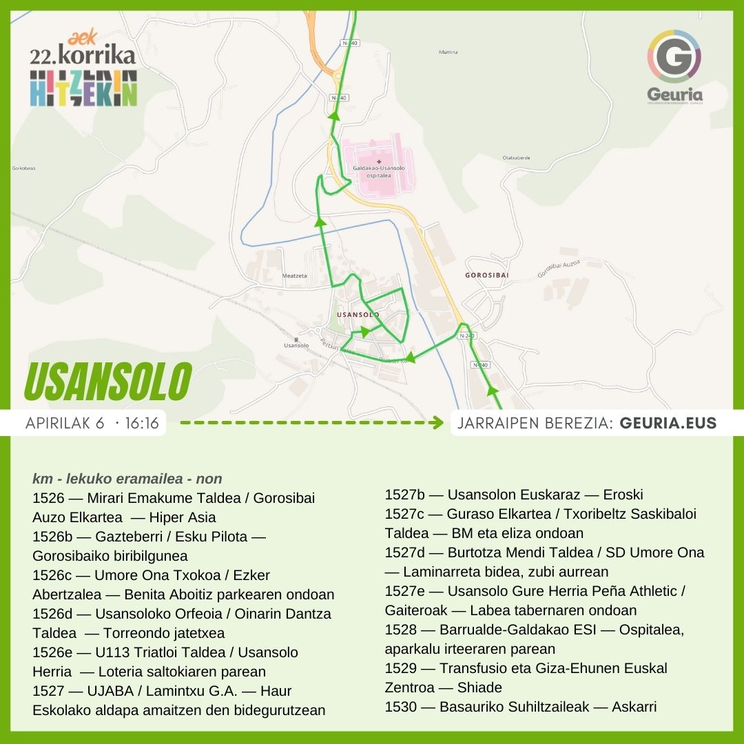 Hain zuzen ere, Usansolotik pasako da Korrika apirilaren 6an: Bediatik sartuko da eta Larrabetzuri emango diote lekukoa. Kilometroz kilometro lekukoa Usansolon nortzuek eramango duten jakin nahi?