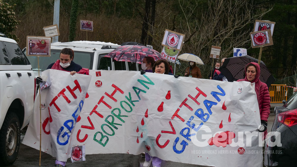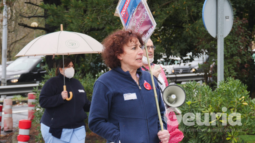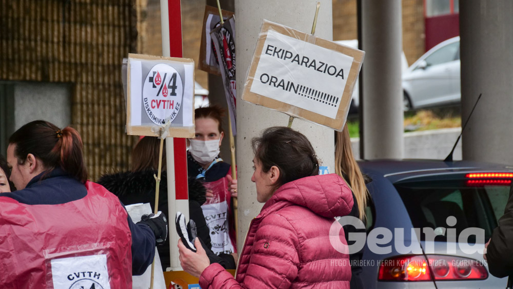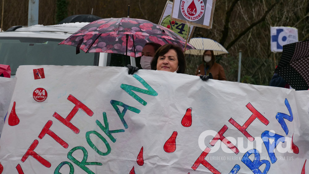 Transfusio eta Giza Ehunen Euskal Zentroko langileek kontzentrazioa egin dute gaur (urtarrilak 19) Galdakao-Usansoloko Ospitalean. Langileen soldatak Osakidetzako gainontzeko langileenak baino % 4 baxuagoak direz, parekatzea eskatzeko deitu dituzte mobilizazioak ordezkaritza duten sindikatuek (CCOO, ELA, LAB, SATSE, UGT eta UTESE).