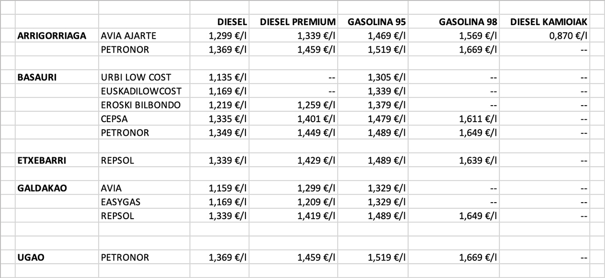 Gaur egun, erregairik merkeena Basaurin eros daiteke. Hego Uribe eskualdean dauden gasolindegien eta euren prezioen zerrenda batu ditugu GEURIAn: