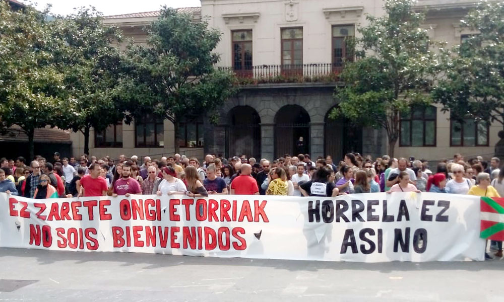 2019.05.23 – 11:45. Eguneraketa. Hainbat herritar bildu dira Ugaoko Herriko Plazan “Ez zarete ongi etorriak. Horrela ez” lemapean. Herriko kaleetan barrena lazo horiak ikus daitezke eta zenbait balkoietan pankartak eskegi dituzte herritarrek.