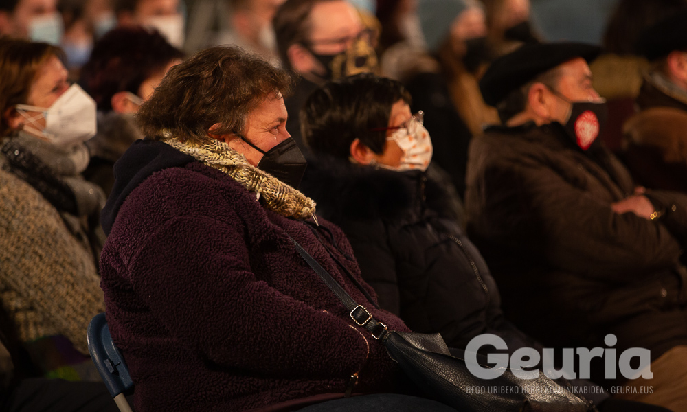14 urterekin haria egiteko makina erraldoiekin egiten zuten lan Ugaoko lantegian. Baina, esan bezala, omenaldiaren egunean irribarretsu zeuden Udiarragako eleizan, urte horietako oroitzapenak elkarren artean kontatzen eta bertan proiektatu ziren antzinako argazkiak adi-adi begiratzen.