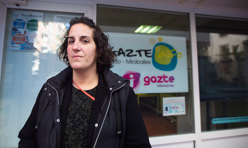 Teorian 16-35 urte bitarteko gazteei zuzendutako zerbitzua dugu Gazteinfo. Adin talde honetako pertsonek ikasketak eta lana bilatzen dute bertan: curriculumak landu, bekak eskatu, boluntario gisako lanetan izena emateko eskabideak egin… Eta nik euren zalantzak argitzeko eta euren ikasketa edo lan-bilaketak bideratzeko egiten dut lan, besteak beste. Urteek aurrera egin ahala Gazteinfoko zerbitzua aldatuz joan da, gizartearen beharrak aldatzen joan direlako. Ondorioz, jende nagusiagoa etortzen hasi da, eta gure laguntza adin askotako pertsonei eskaintzen diegu azkenean. Azken batean, pertsona horiek orientatu edo Lanbide lan-zerbitzuarekin egin behar dituzten tramite horiek egiten laguntzen diet, edota euren curriculumak kudeatzen, esaterako.