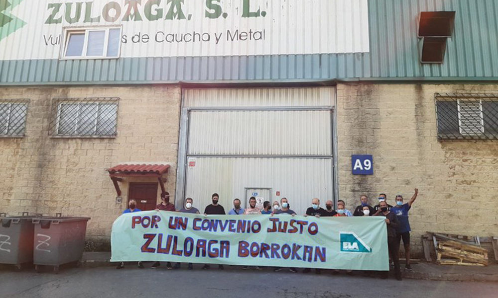 Ekainaren 28tik greba mugagabean daude Zaratamoko Vulcanizados Zuloaga S.L. enpresako 23 lagun. Udatik bueltan, egoeraren berri izateko ELA sindikatuarekin berba egiteko aukera izan du Geuriak: “Vulcanizados Zuloagak muzin egin zien langileen proposamenei eta langileek etengabeko mobilizazioak egin dituzte lantokiaren aurrean”, azaldu dute sindikatutik. ELAren arabera, Vulcanizados Zuloagako langileei kimikoen estatuko hitzarmena ezartzen zaie: “Gaur egungo Estatu mailako hitzarmen honek 1.050 euroko soldatak eta lan-baldintza txarrak dakarzkie enpresako langileei, eta gure proposamena hitzarmen propioa egitea litzateke”.