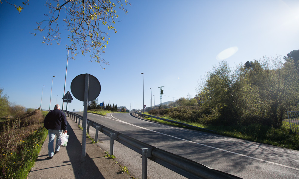 MOIORDIN ERDIGUNEA: Udalak 700.000 euroko inbertsioa ekarriko lukeen 29 metroko diametroa duen biribilgunea ezartzea proposatu zuen auzoa zeharkatzen duen errepide nagusiko gurutzean (BEZa kanpo): “Biribilgunearen helburu nagusia ibilgailu astunen abiadura gutxitzea da”, azaldu zuen Abascalek. “Horrez gainera, ibilgailu handien maniobragarritasuna biziki arinduko litzateke eta hiru errei egotetik bi egotera igaroko litzateke”, gehitu zuen. Balizko biribilgune horretik gorantz, metro batzuetara Makatza taberna dugu. Teknikariek adierazi zuten gaur egungo gidari askok euren autoak taberna horren aurrean aparkatzen dituztela, errepideraen bestaldean, bazterbidean. “Auzotar askoren ohitura bada ere, autoak bazterbidean aparkatzea guztiz debekatuta dago”, jakinarazi zuten teknikariek. Horregatik, Irrisgarritasun Planak bere gain hartzen zuela Makatza tabernako espaloia zabaltzea eta errepidearen alde horretan bateriako 8-9 aparkaleku diseinatzea.