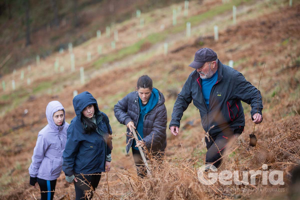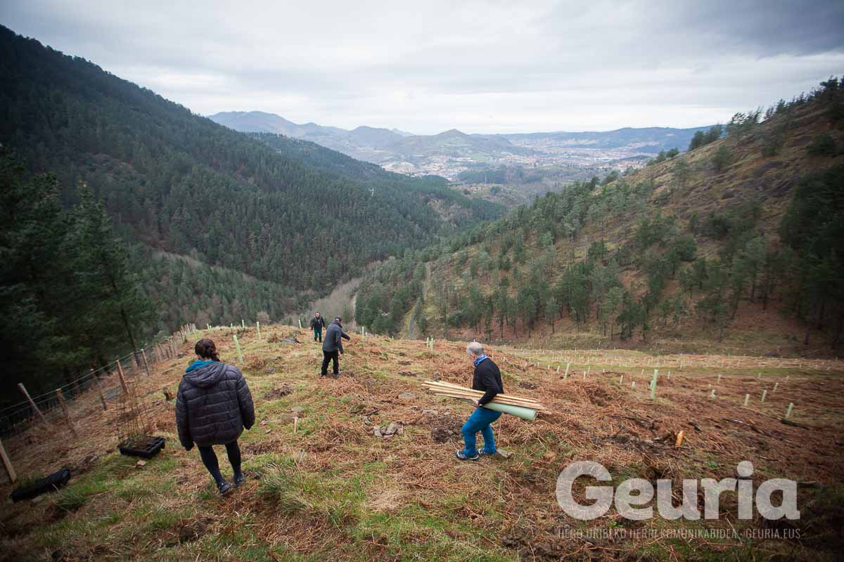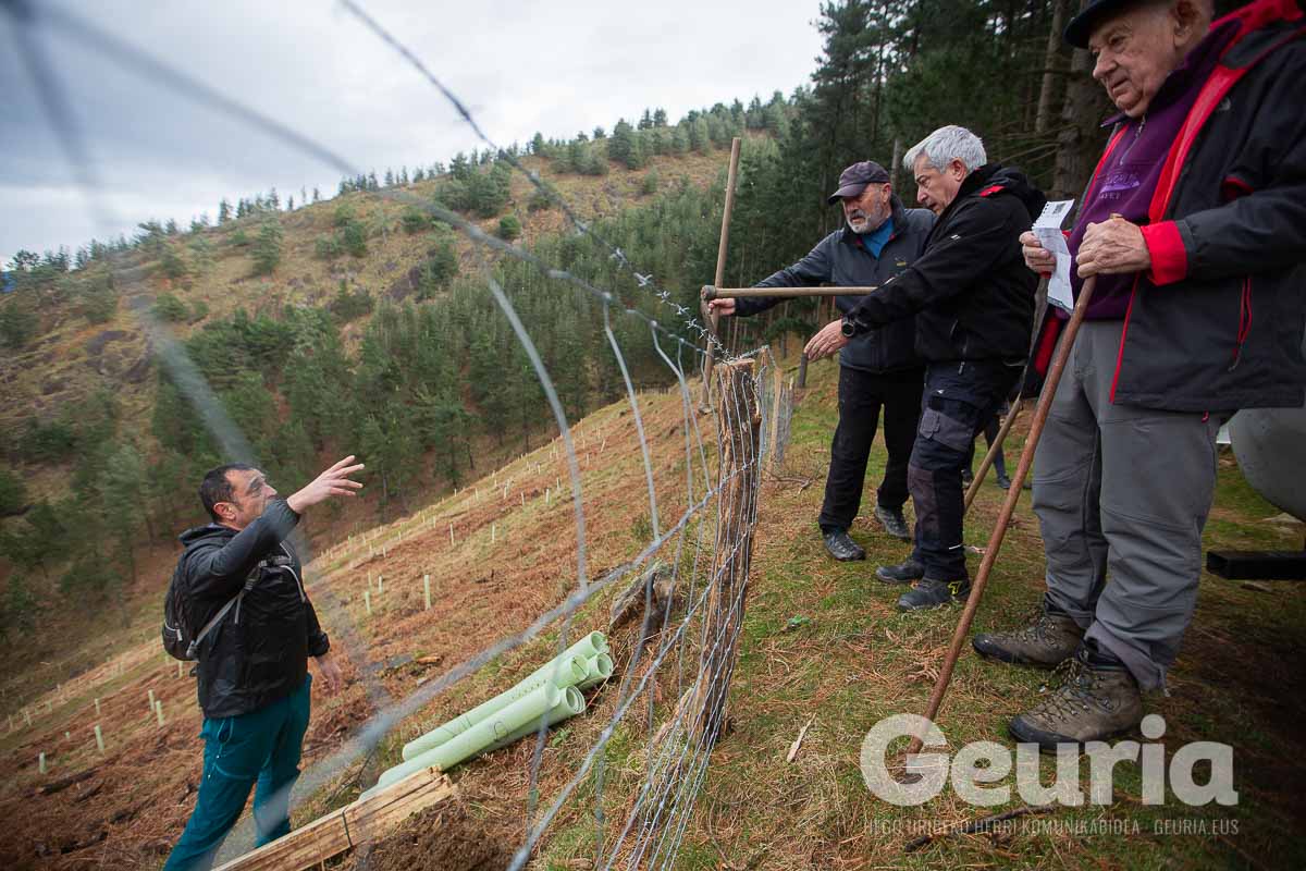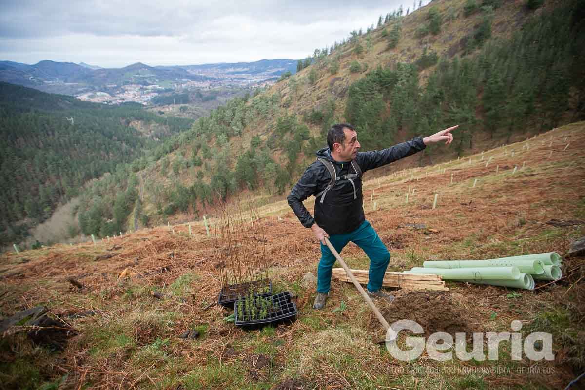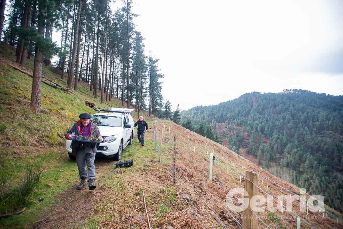 Baina helburuak aldatu egin dira orain: Zaratamoko Udalak Foru Aldundiarekin elkarlanean onartu berri duen Kudeaketa Plan berrian herri basoen erabilera anitza bilatu da. “Erabilera anitz horretan lurraren berreskurapena da ardatz nagusia”, azpimarratu du Ugarrizak. Pagoak, urkiak, ametzak, sagarrondoak… eta bestelako espezietako zuhaitzak landatu dituzte gaur.
