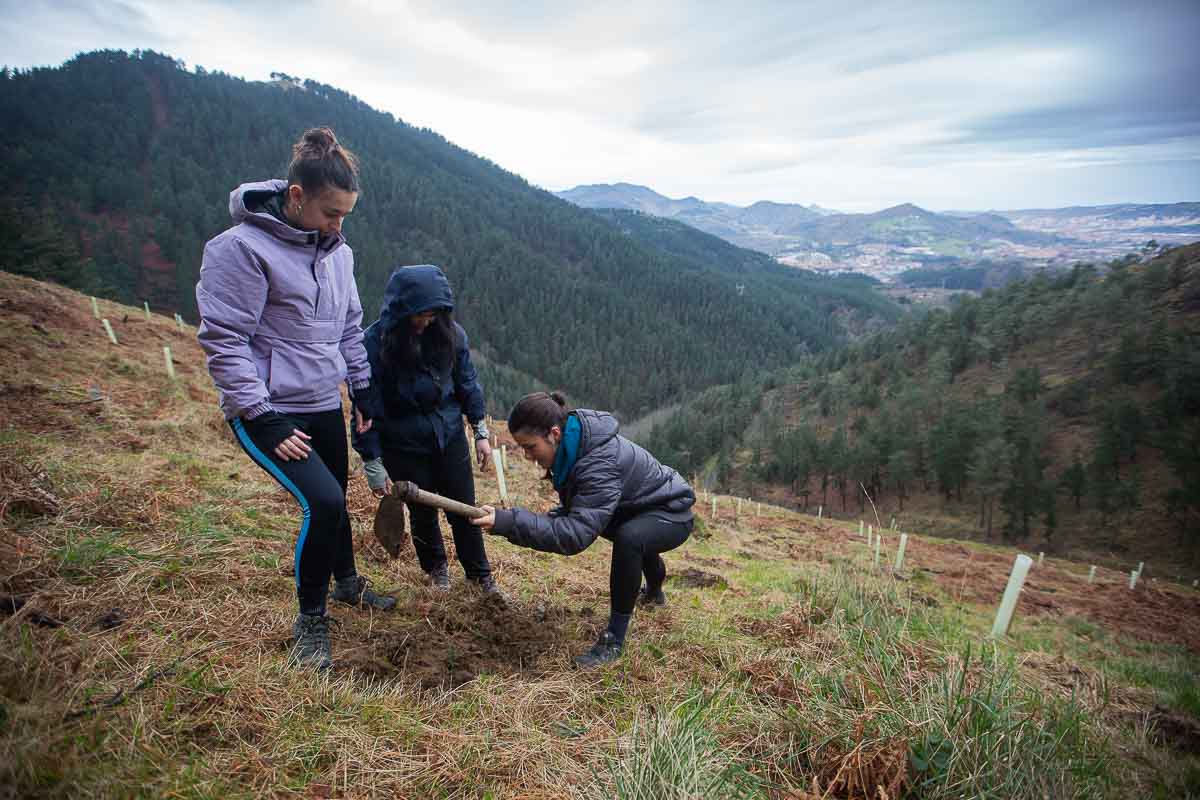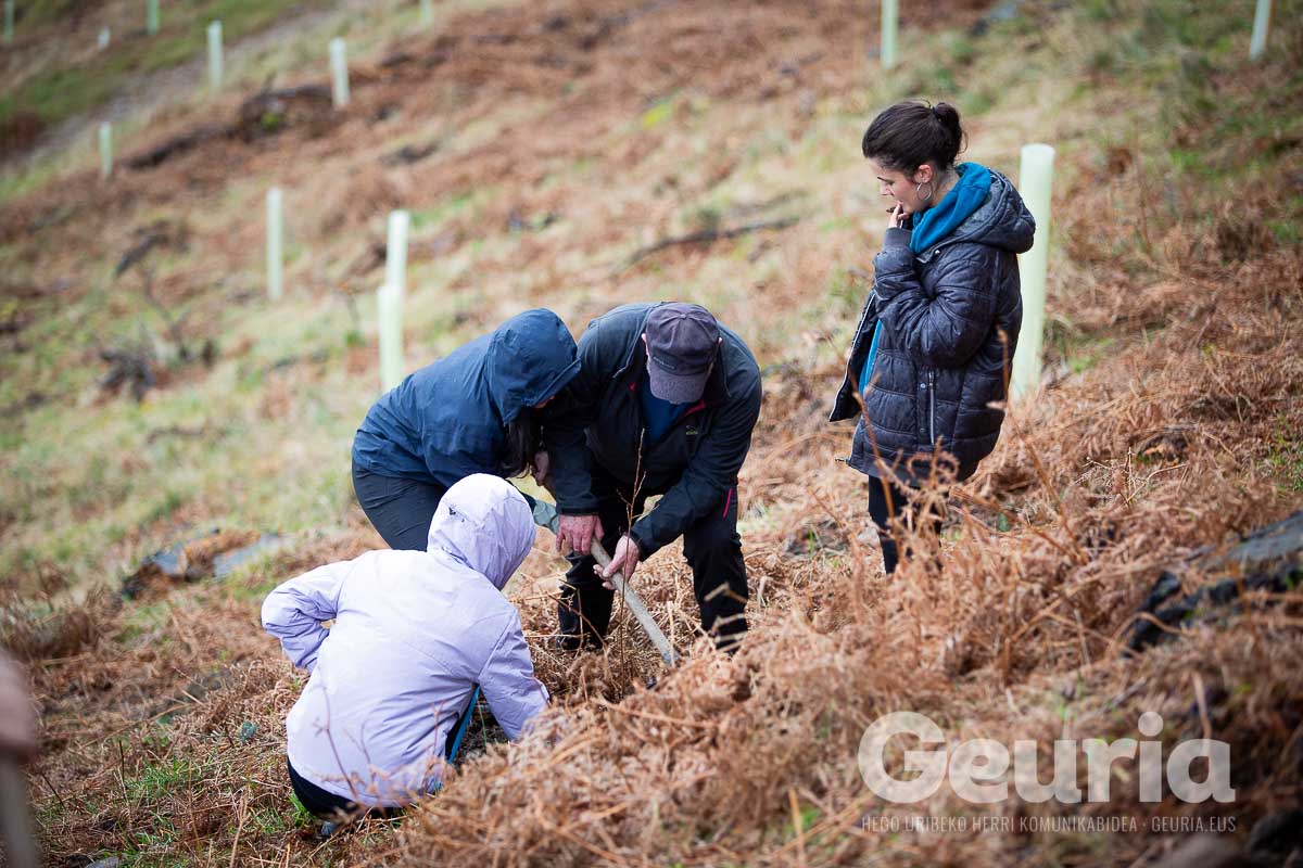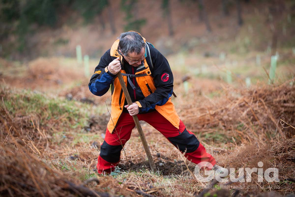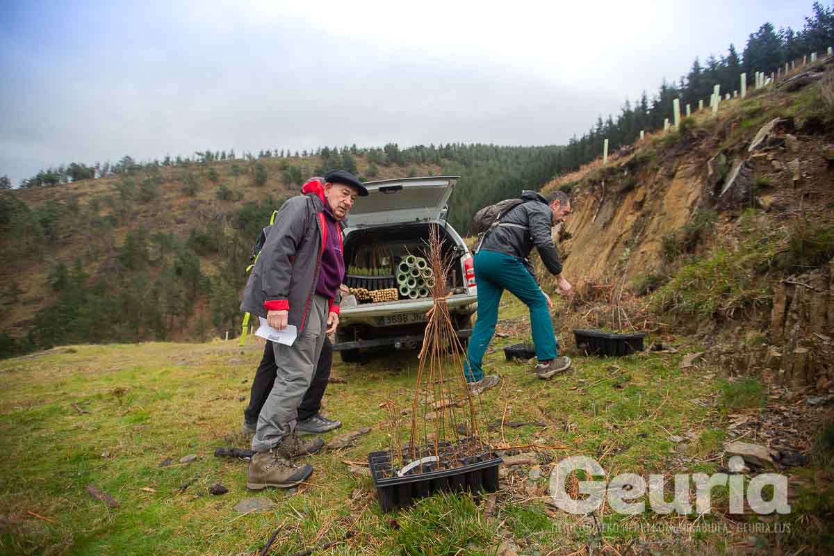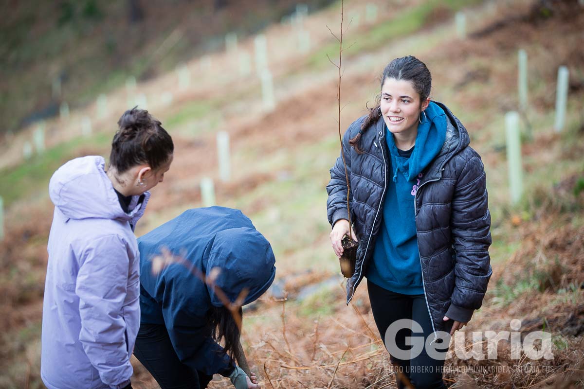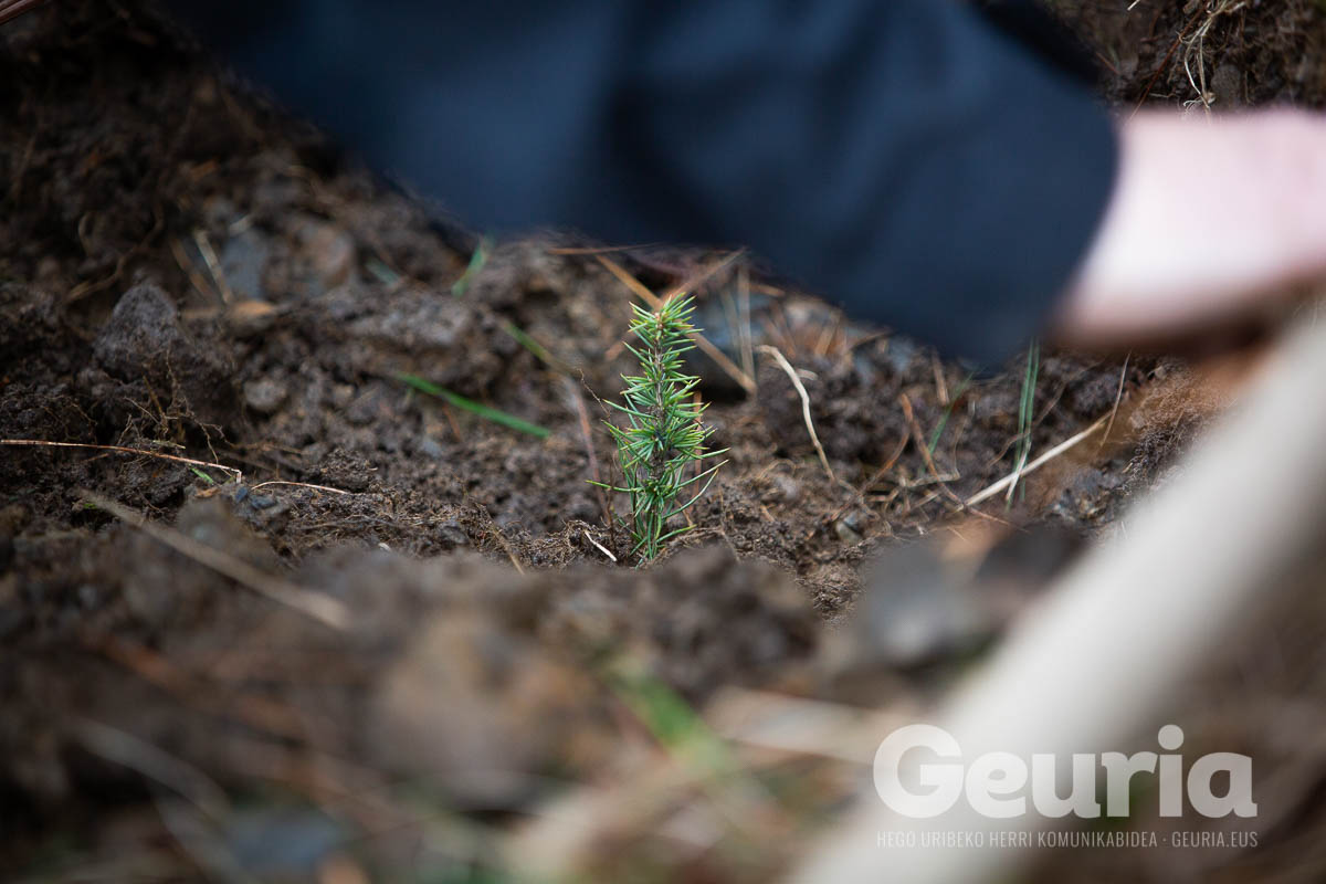 Baina helburuak aldatu egin dira orain: Zaratamoko Udalak Foru Aldundiarekin elkarlanean onartu berri duen Kudeaketa Plan berrian herri basoen erabilera anitza bilatu da. “Erabilera anitz horretan lurraren berreskurapena da ardatz nagusia”, azpimarratu du Ugarrizak. Pagoak, urkiak, ametzak, sagarrondoak… eta bestelako espezietako zuhaitzak landatu dituzte gaur.