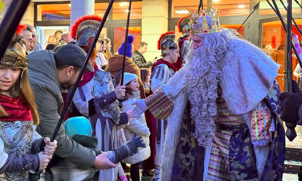 Meltxor, Gaspar eta Baltasar Galdakaon zehar ibili dira, poza eta ilusioa oparitzen. Herritarrak, gazteak eta helduak, kalera irten dira eurekin egotera, eta trukean gozoki pila jaso...